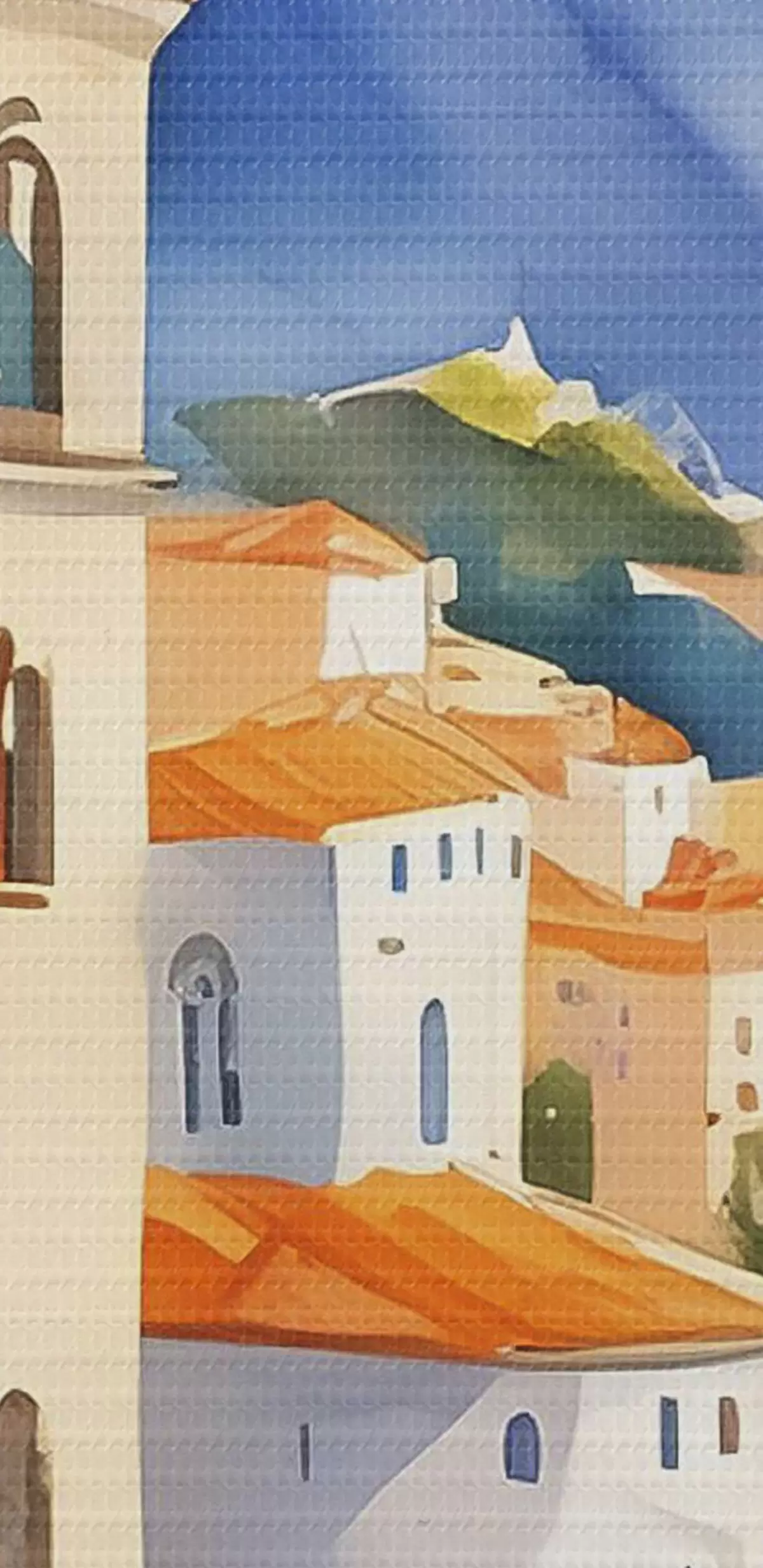 Kép Vízfestmény, amely egy várost ábrázol egy víztározó szélén Nr r38407