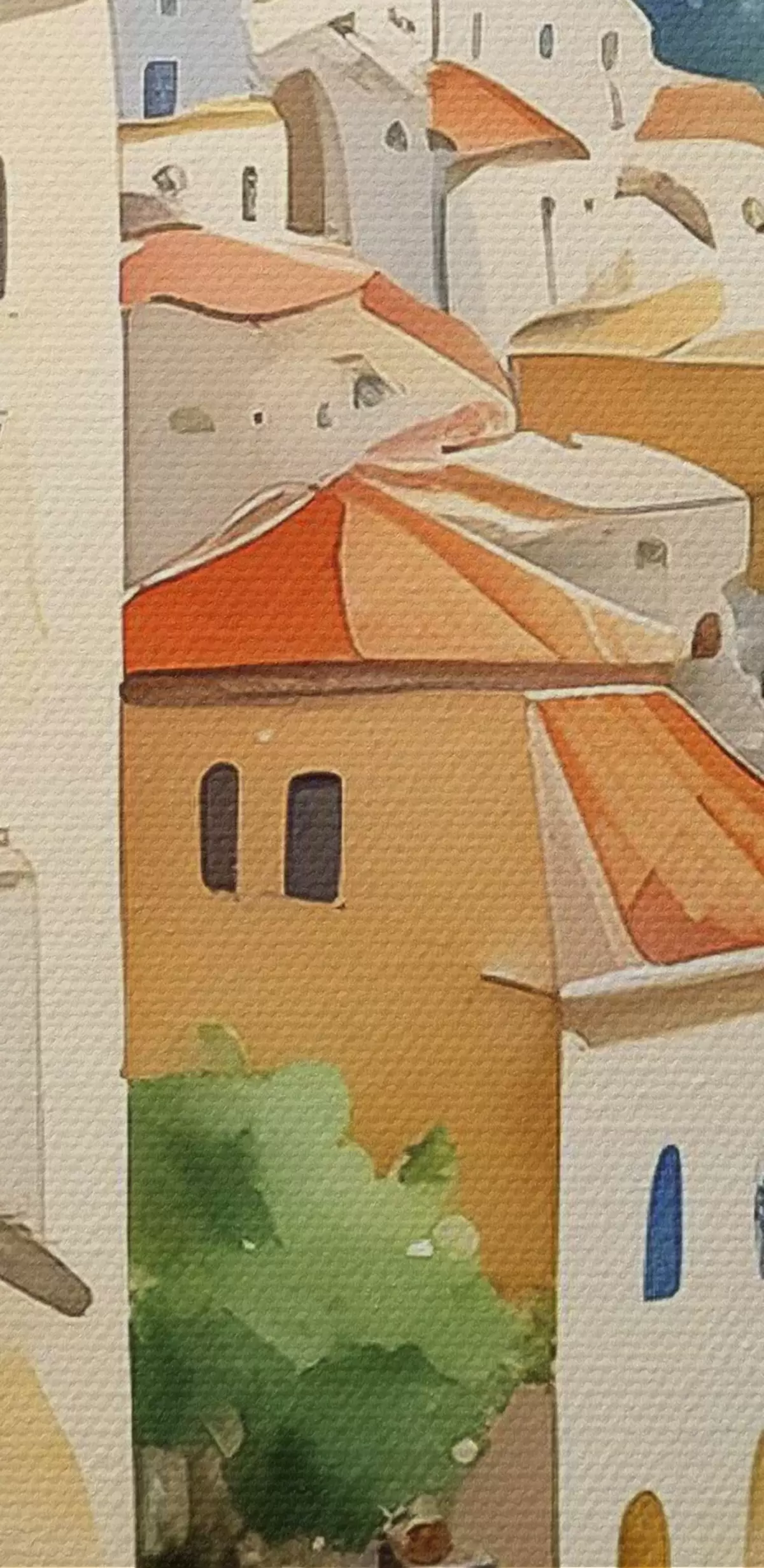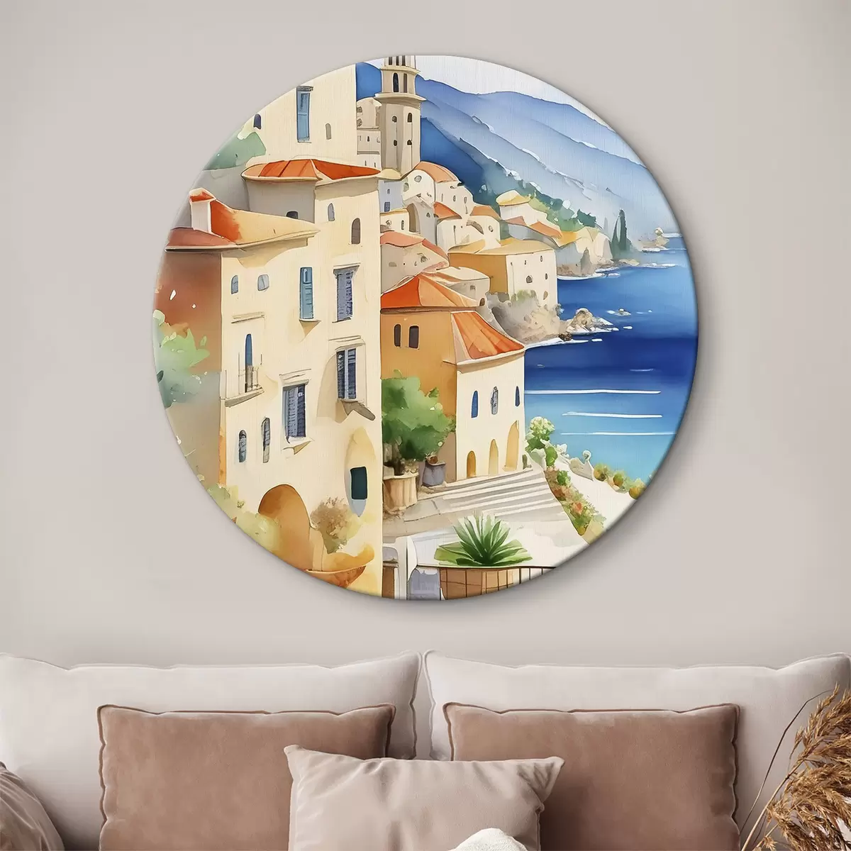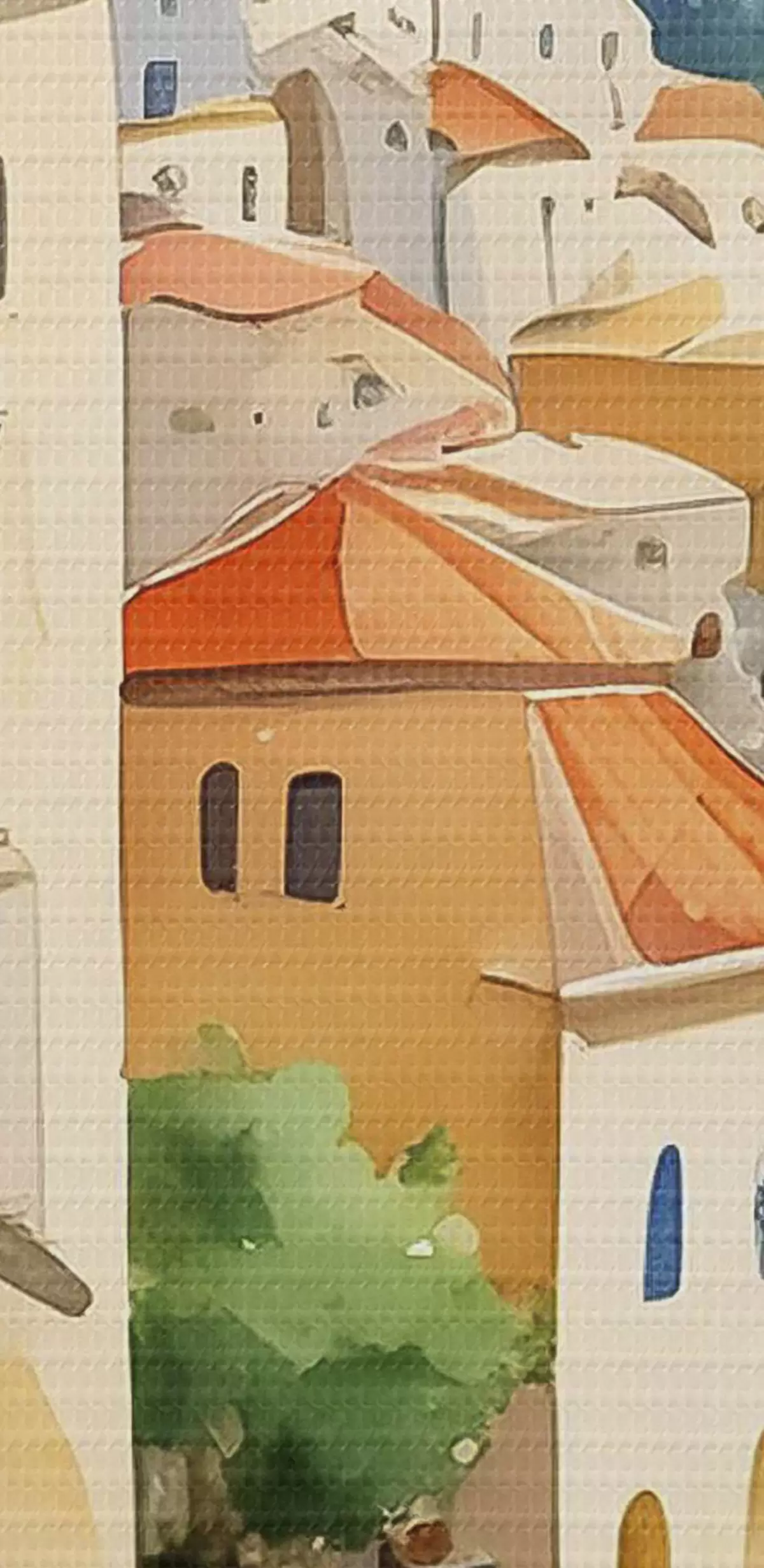 Kép Egy akvarell, amely egy várost ábrázol egy dombon a tenger felett Nr r38409