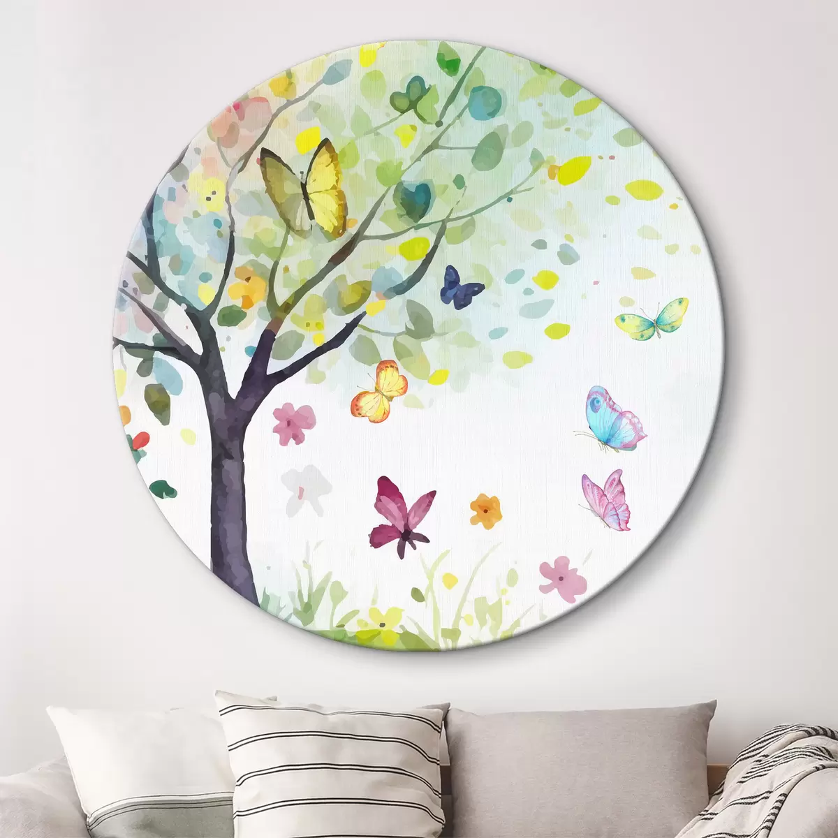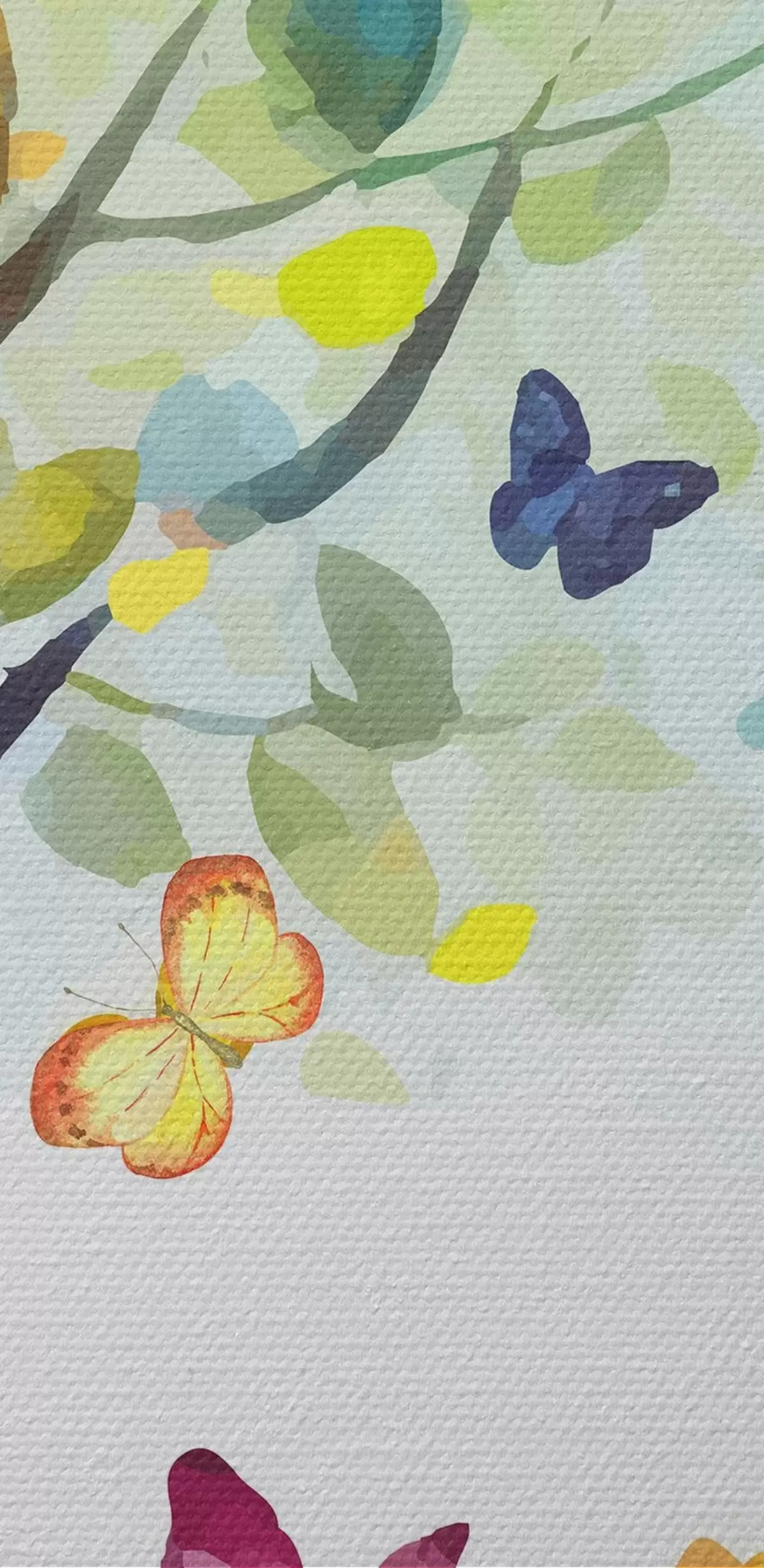 Kép fa fényes levelekkel, akvarell festékkel, pillangókkal Nr r38444