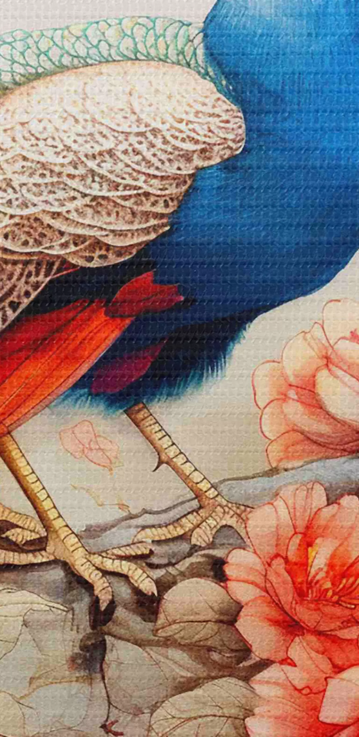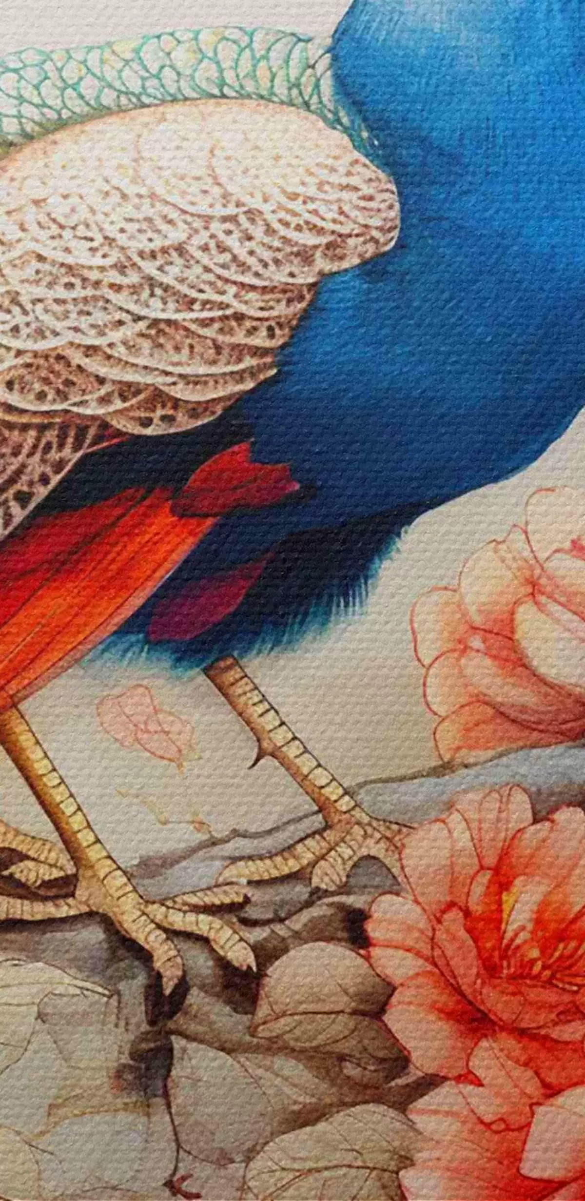Kép Egy pávát ábrázoló festmény egy virágokkal díszített ágon Nr r38451