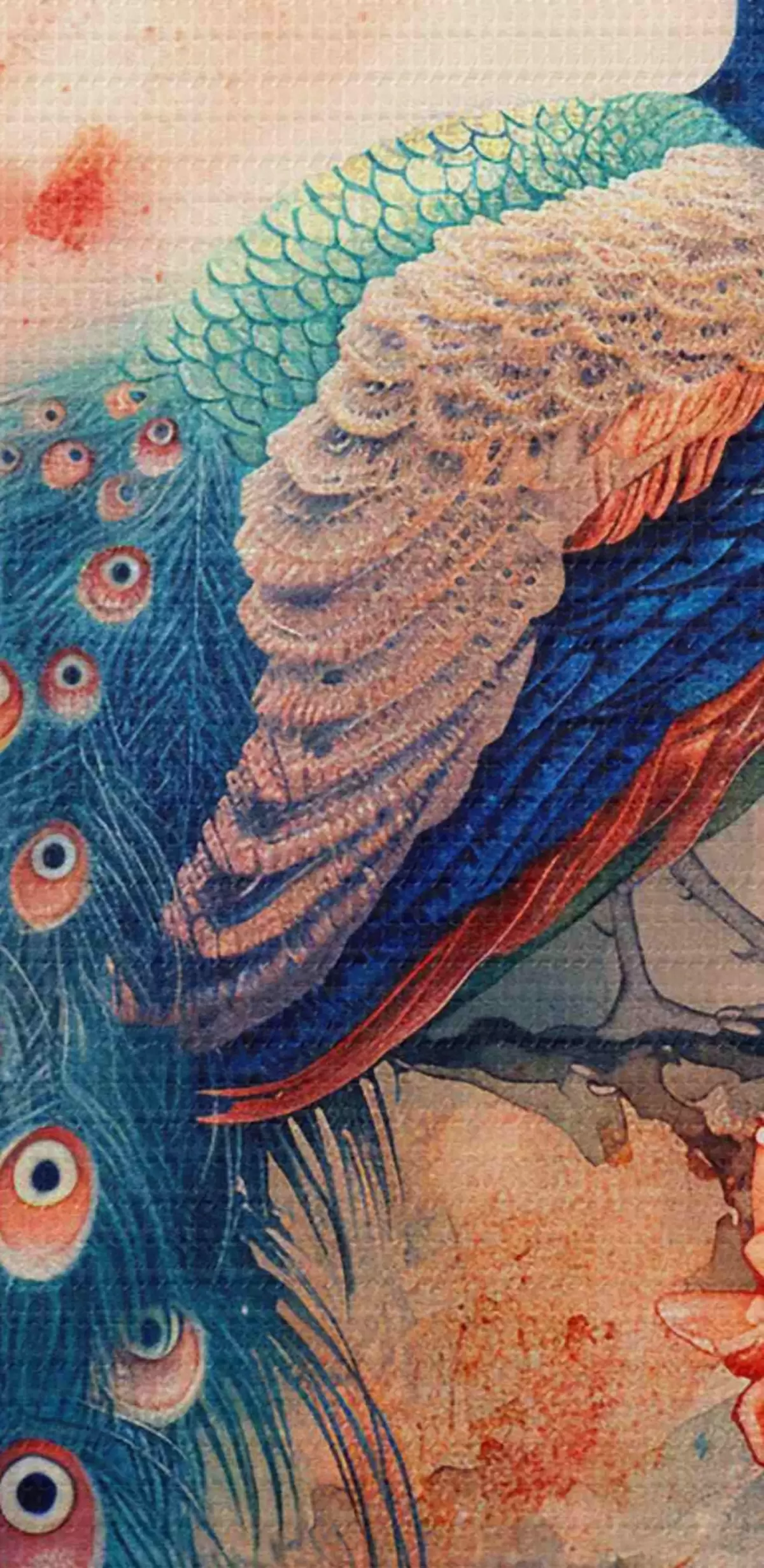 Kép Egy pávát ábrázoló festmény egy virágokkal díszített ágon Nr r38455