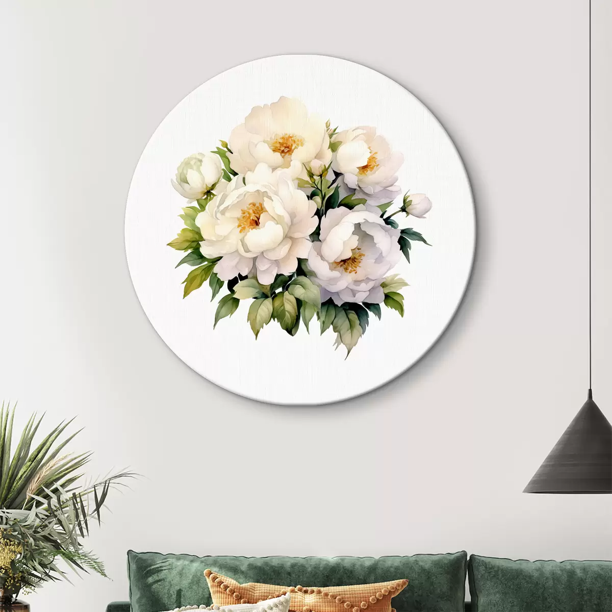 Kép Fehér virágzó bazsarózsa virágok zöld lombozatban, akvarell, botanikai Nr r38481