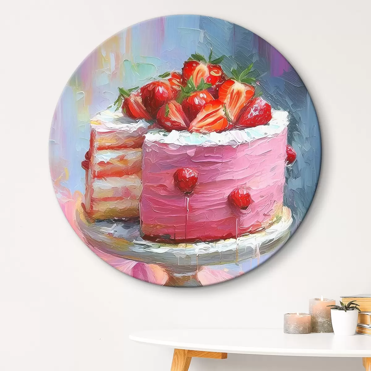 Kép Epertorta krémmel, olajfestékkel, nagy ecsetvonásokkal, nyári bogyókkal, rózsaszín színekkel Nr r38499