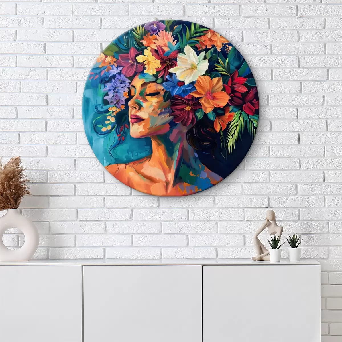 Kép Egy festmény, amely egy nőt ábrázol virággal a hajában Nr r38574