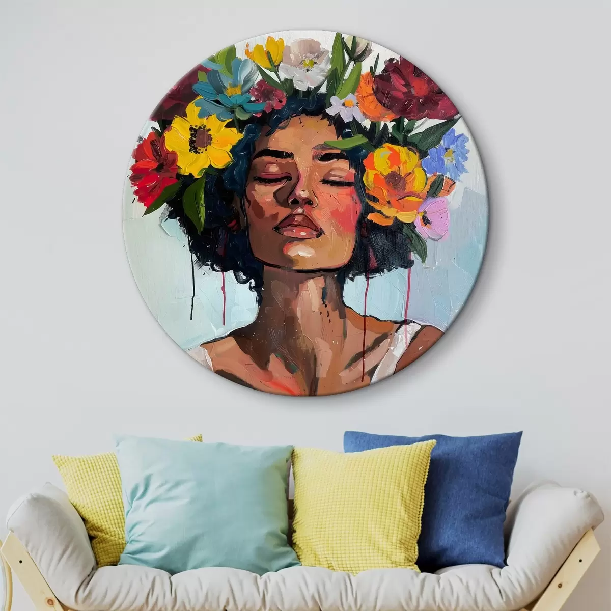 Kép Egy festmény, amely egy nőt ábrázol virággal a hajában Nr r38575
