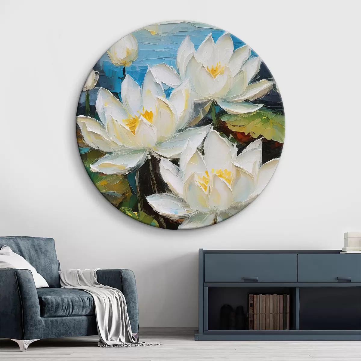 Kép fehér lótuszvirágok a vízen, nagy virágok, olajfestékek Nr r38604