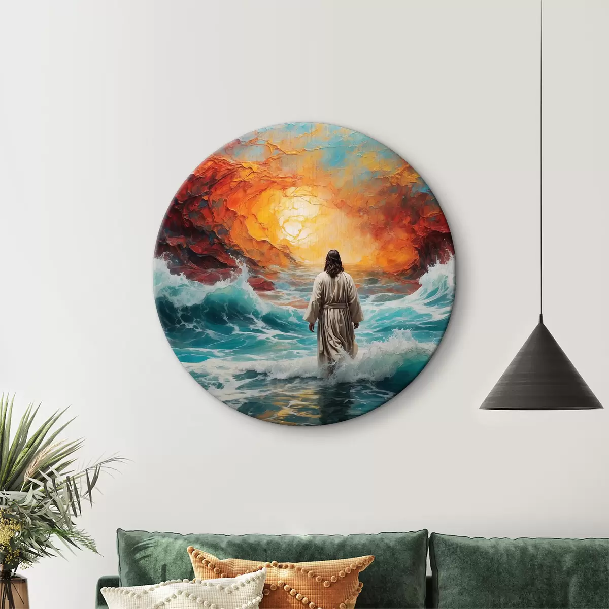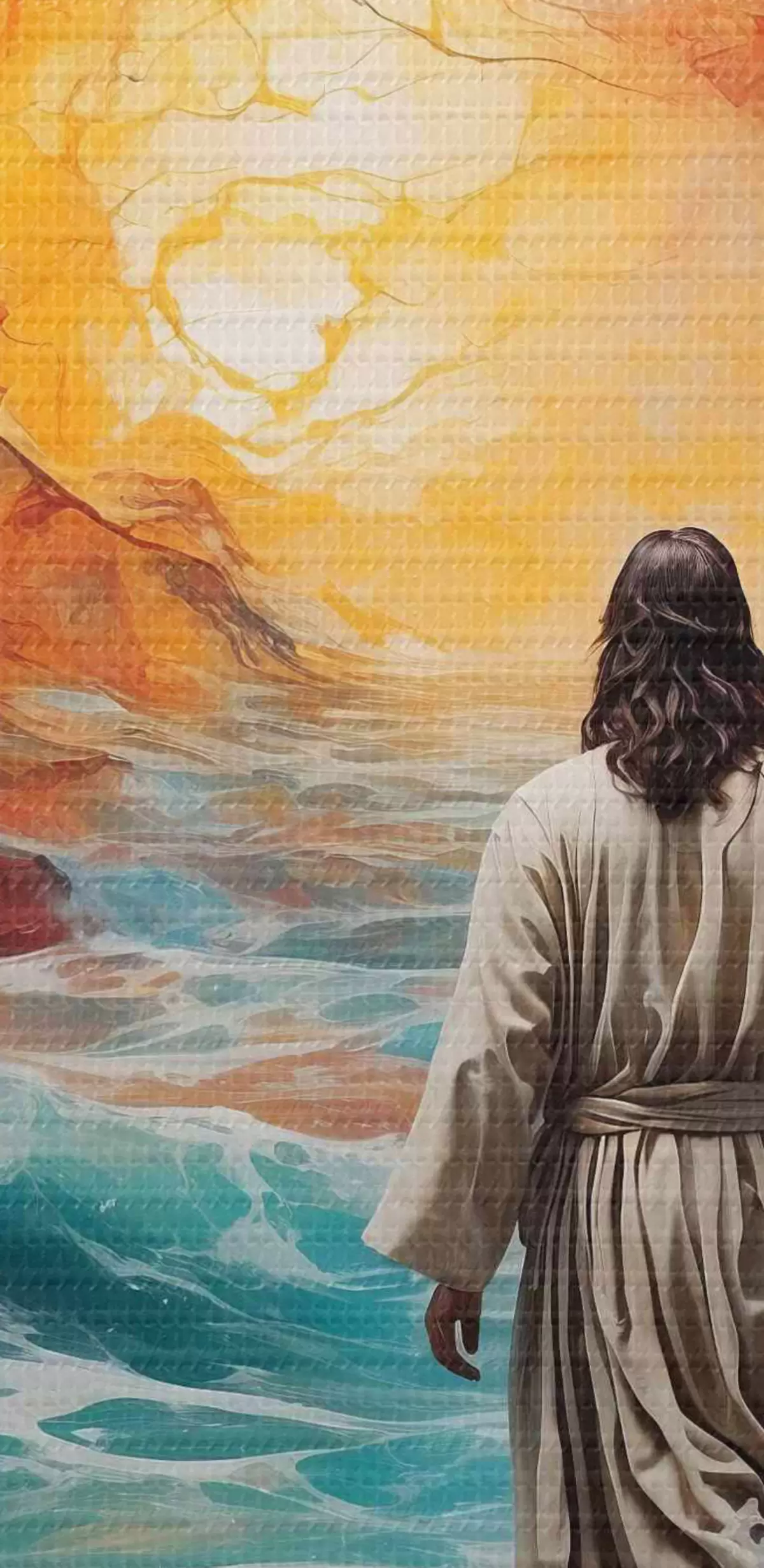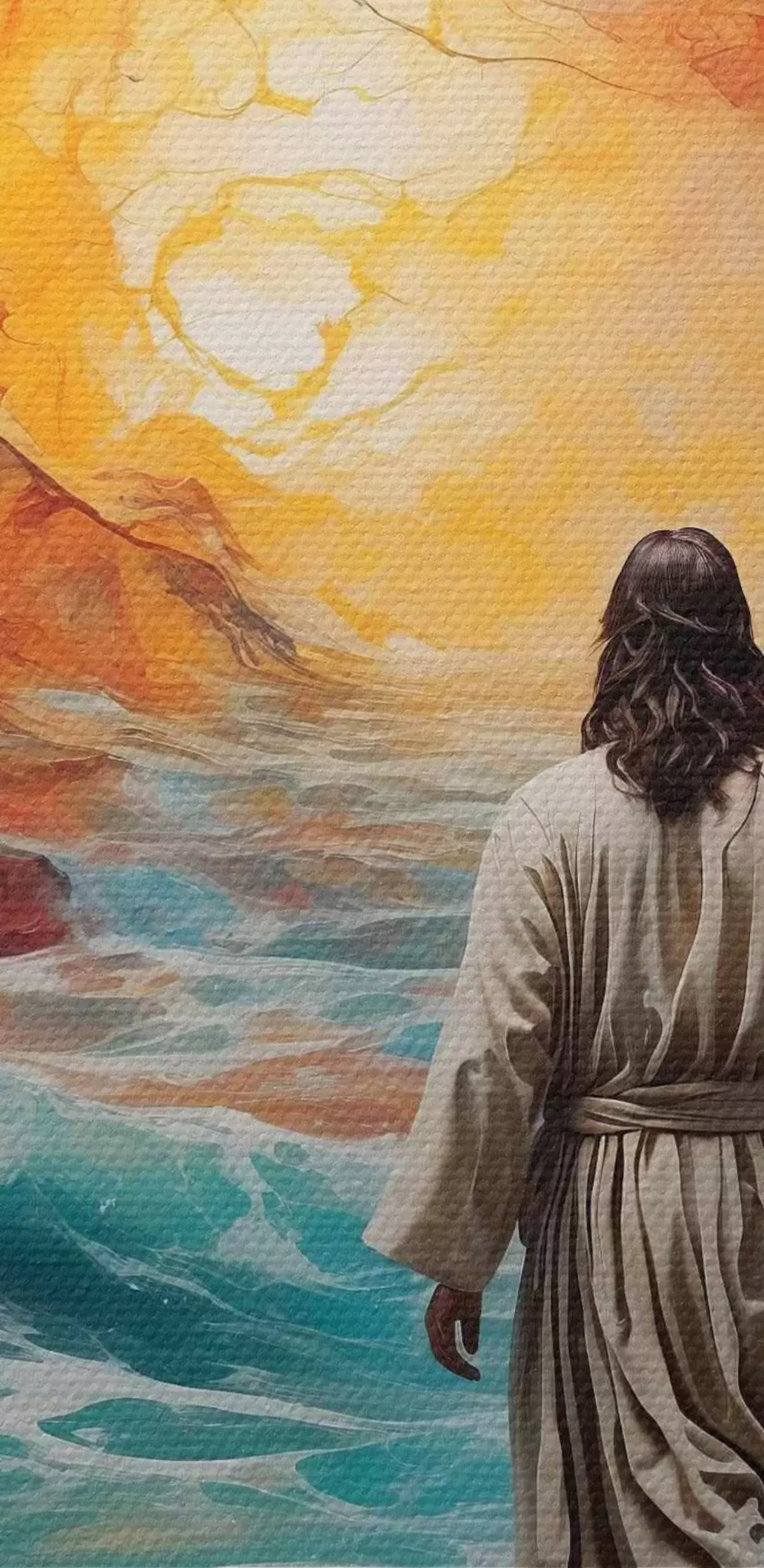 Kép Egy ember sétál a tüzes ég és a tenger között Nr r38612