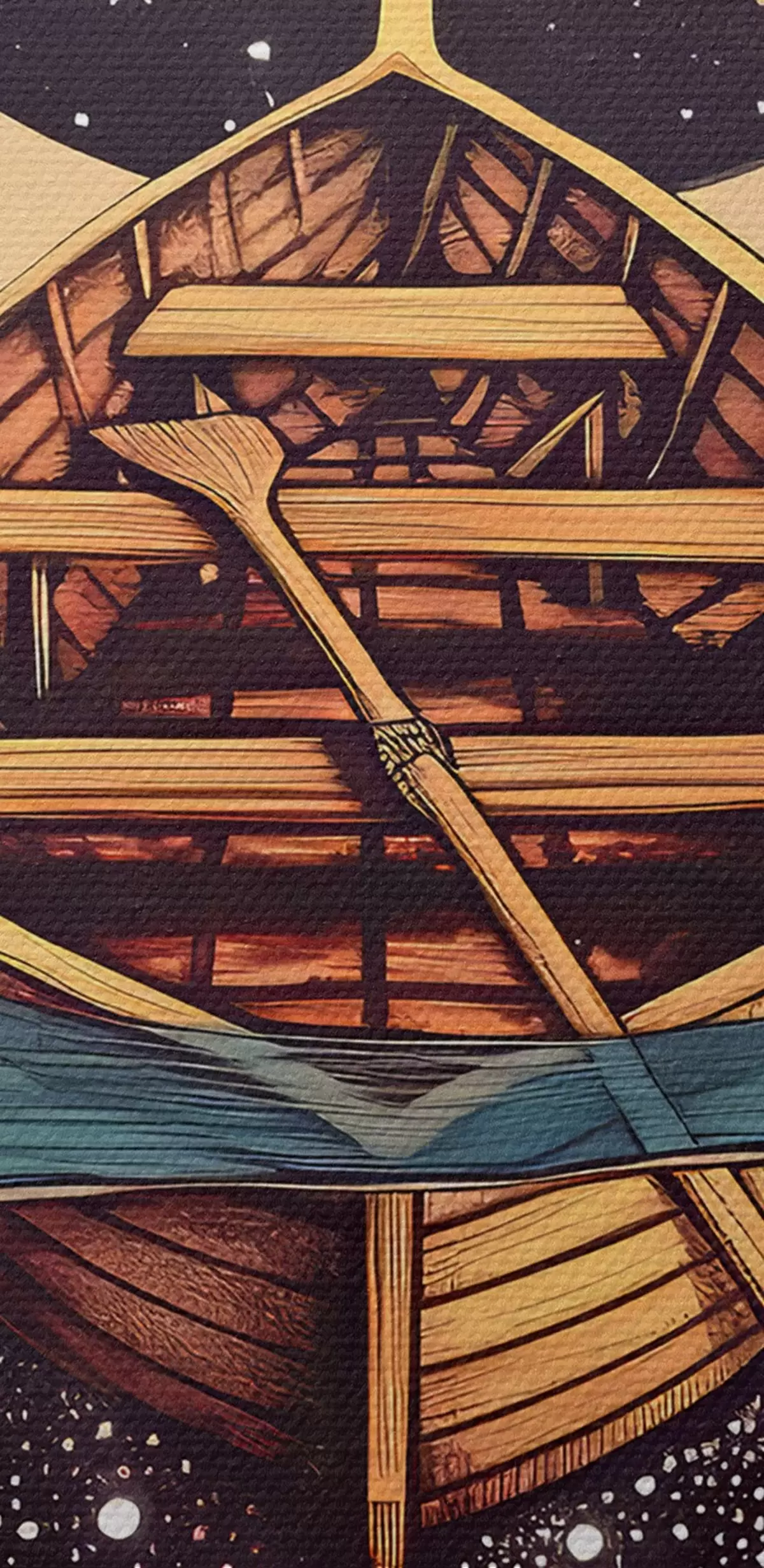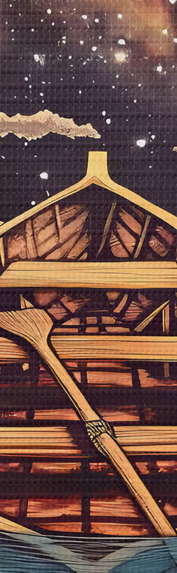 Ahhoz, hogy a vásznat a feszítőrúdra feszítsük anélkül, hogy a kép megsérülne, tükrözött képet használunk.