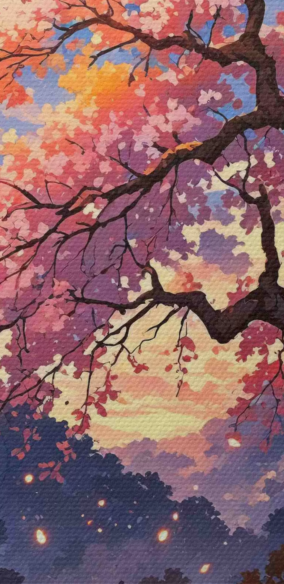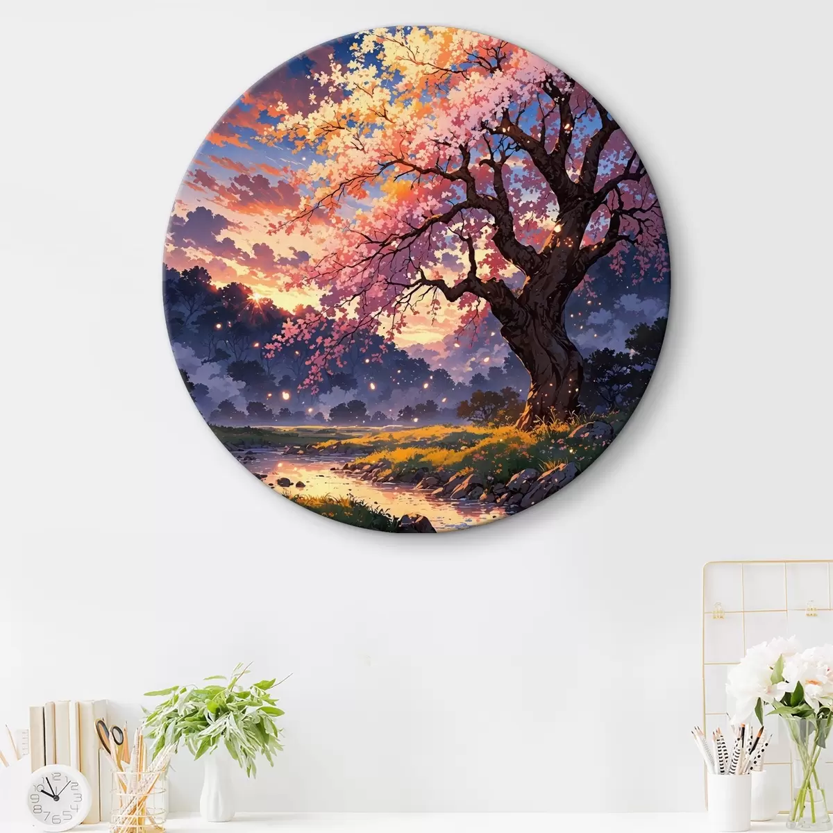 Kép Egy rózsaszín virágú fa, amelyet egy folyó szel át Nr r38645