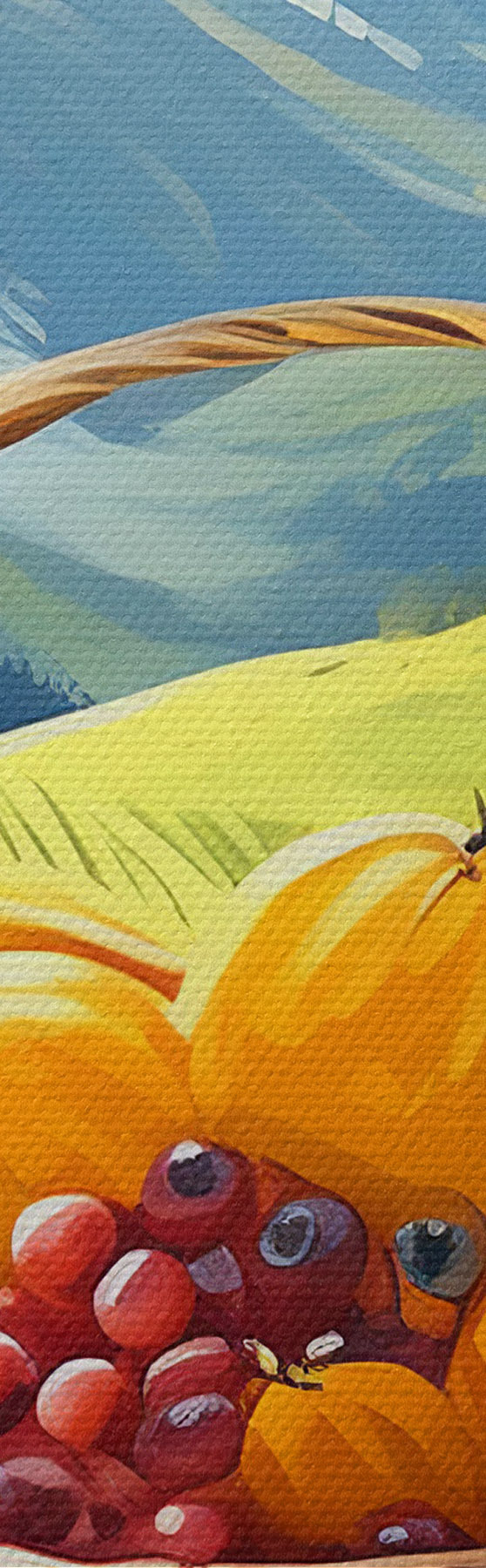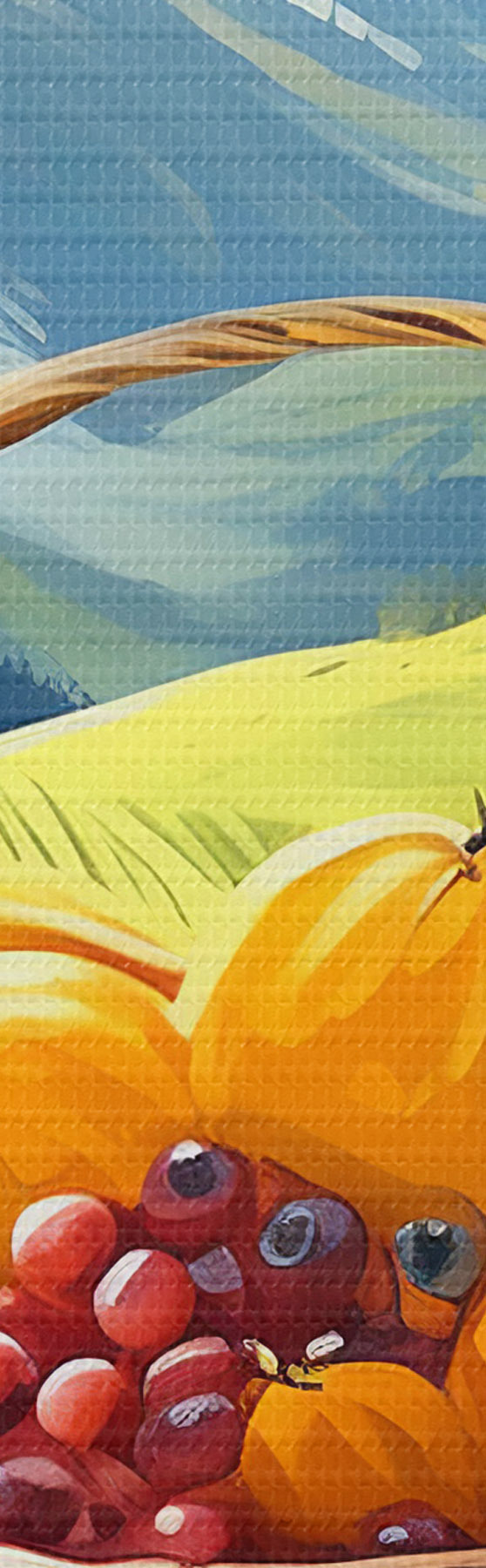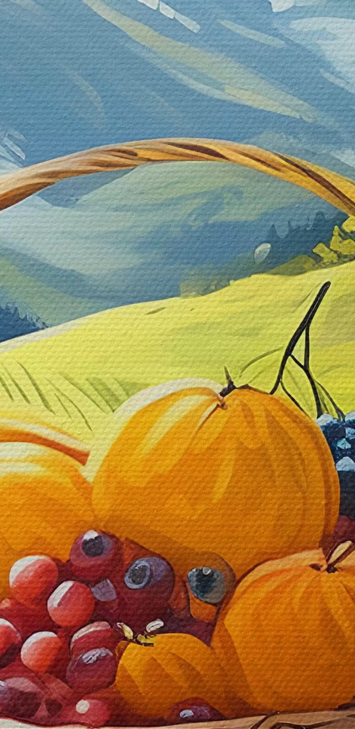Kép egy kosár gyümölcs egy réten a hegyekben Nr r38654