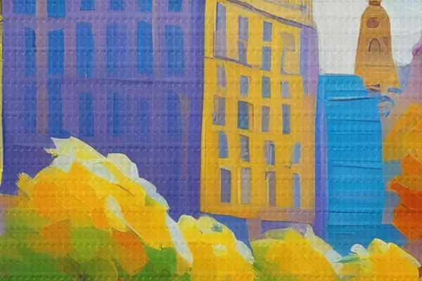 Ahhoz, hogy a vásznat a feszítőrúdra feszítsük anélkül, hogy a kép megsérülne, tükrözött képet használunk.