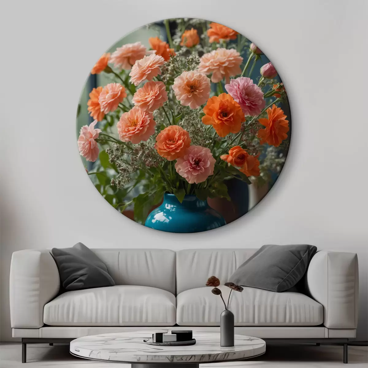 Kép Narancssárga virágcsokor kék vázában Nr r38737