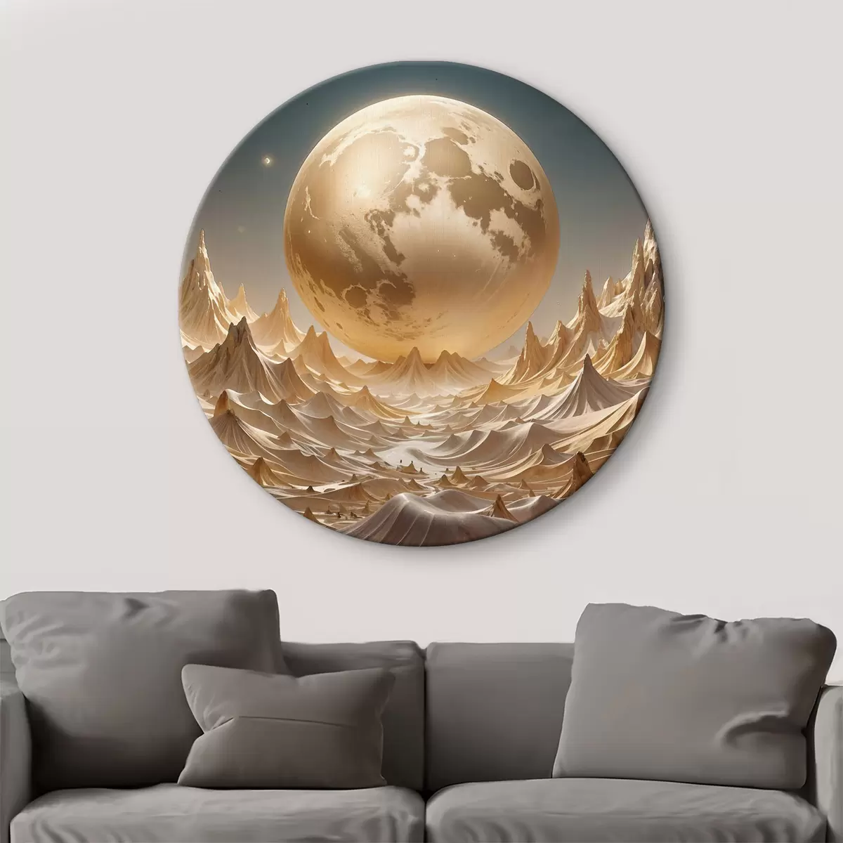 Kép Izzó telihold egy szürreális, hegyvidéki táj felett, csúcsokkal Nr r38775