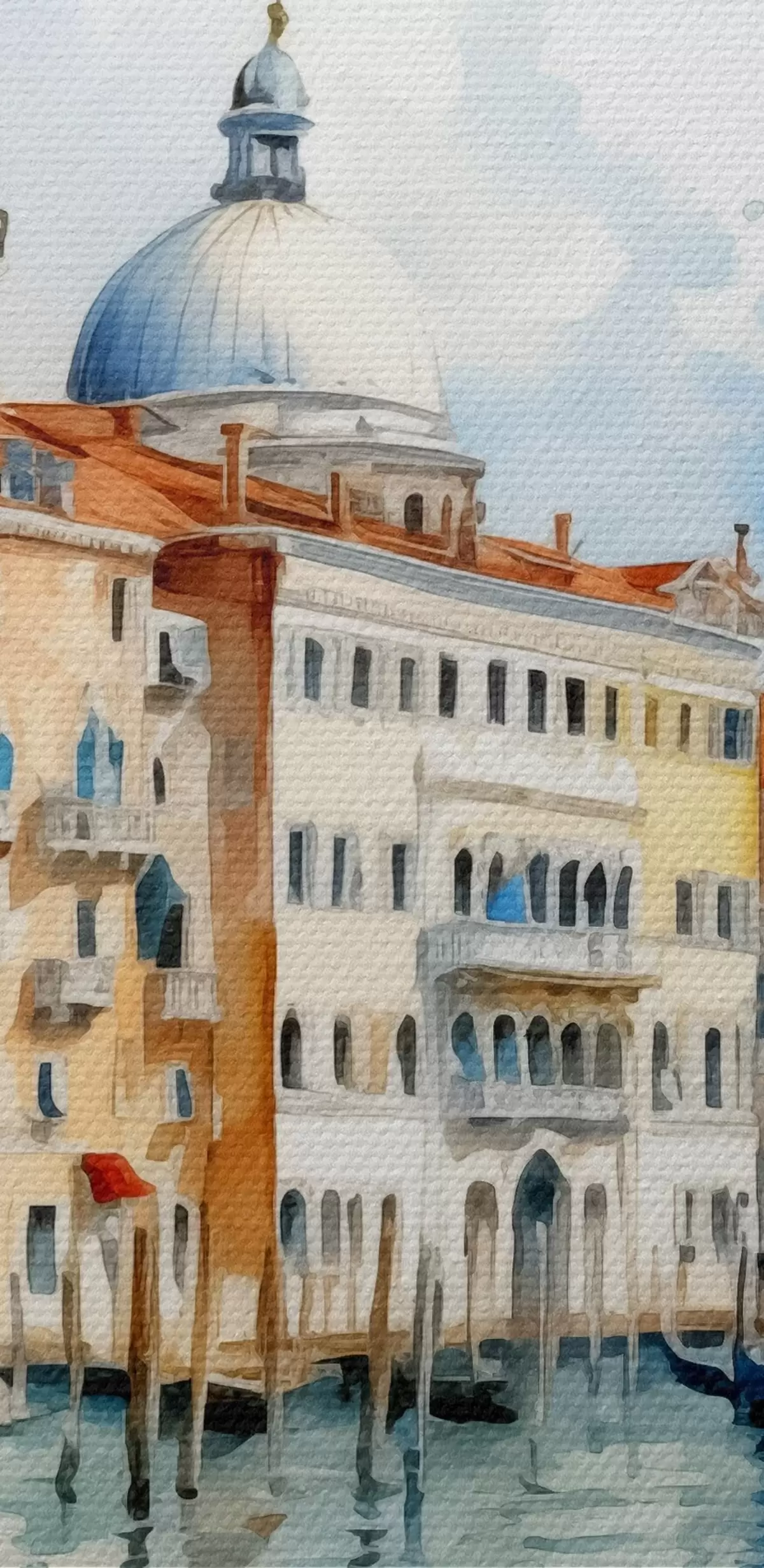 Kép Akvarell táj Velence, öböl, folyó, építészet, táj, csónakok, gondola Nr r38908