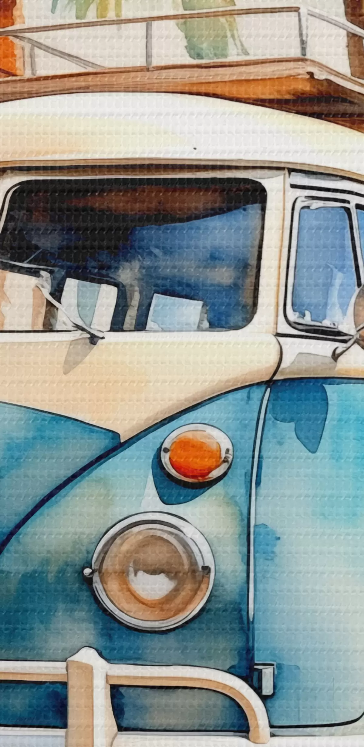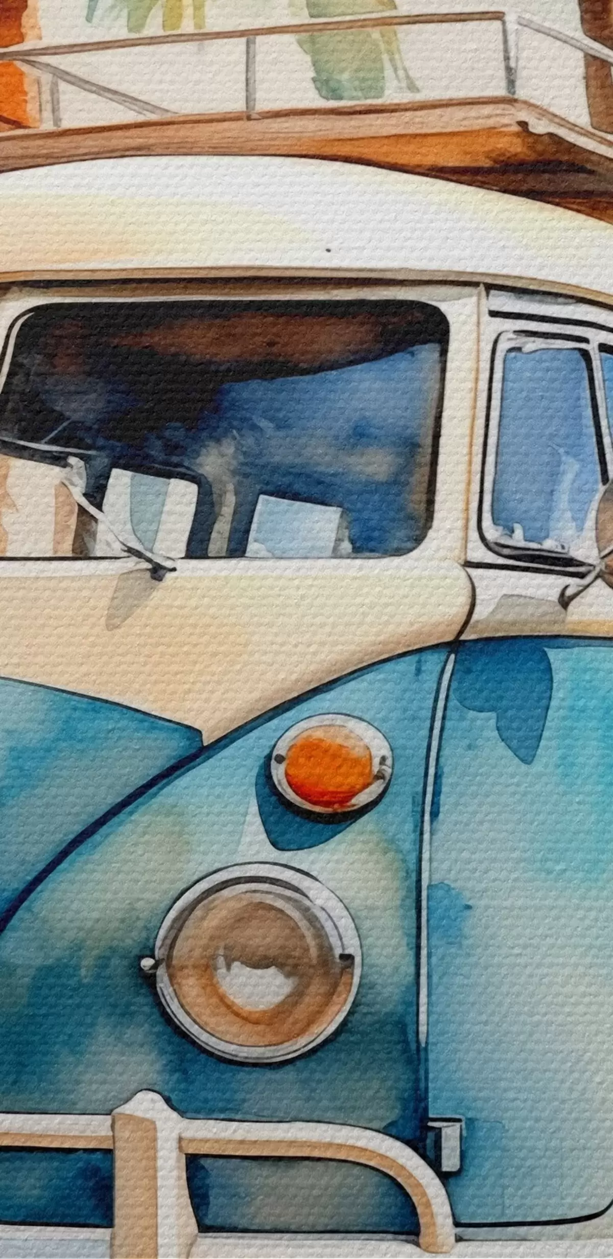 Kép Egy utazó autó parkol a tengerparton a pálmafák akvarell hátterében Nr r38911