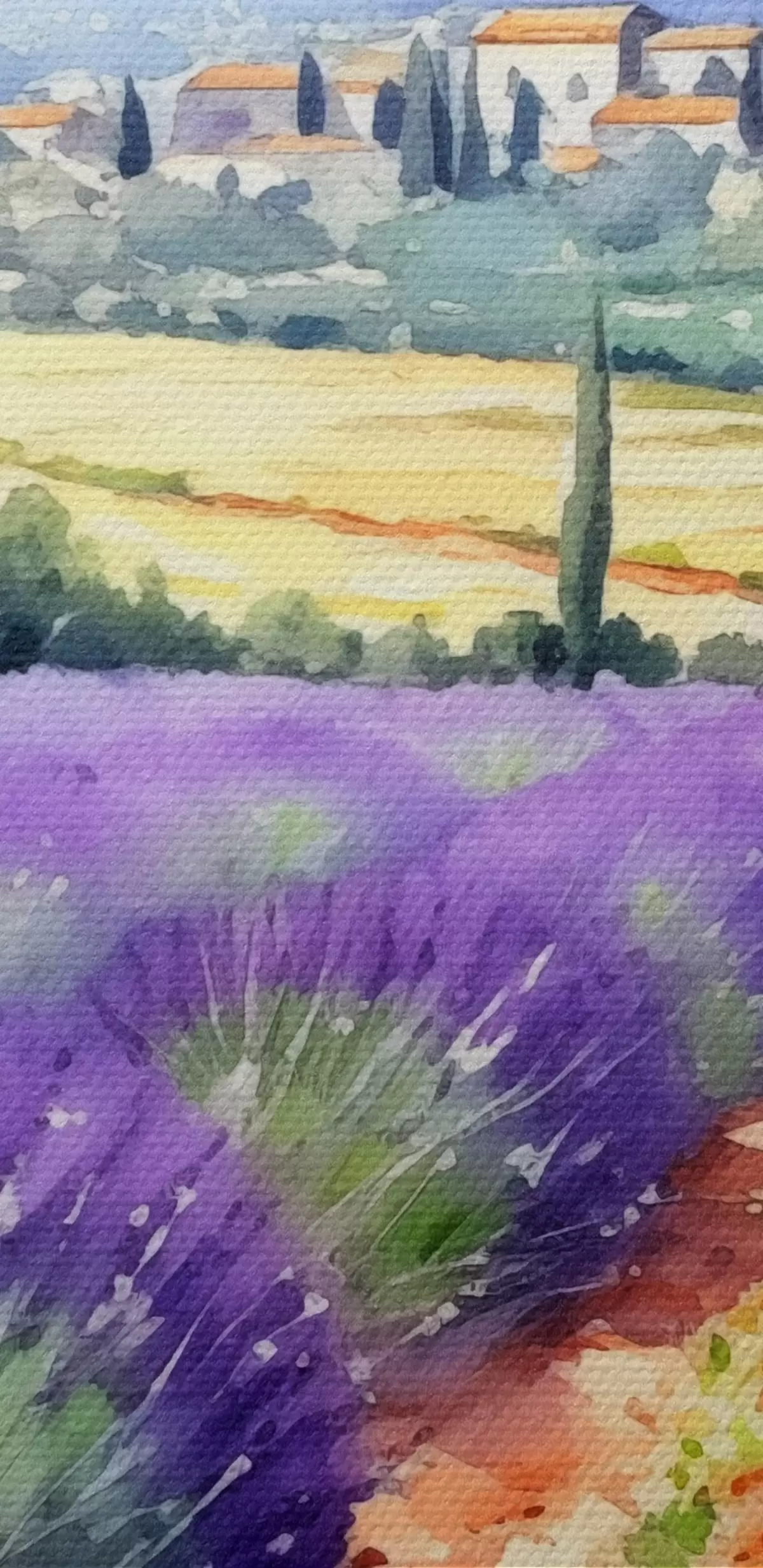 Kép Akvarell levendula mező, a háttérben a hegyek és a vidék Nr r38913