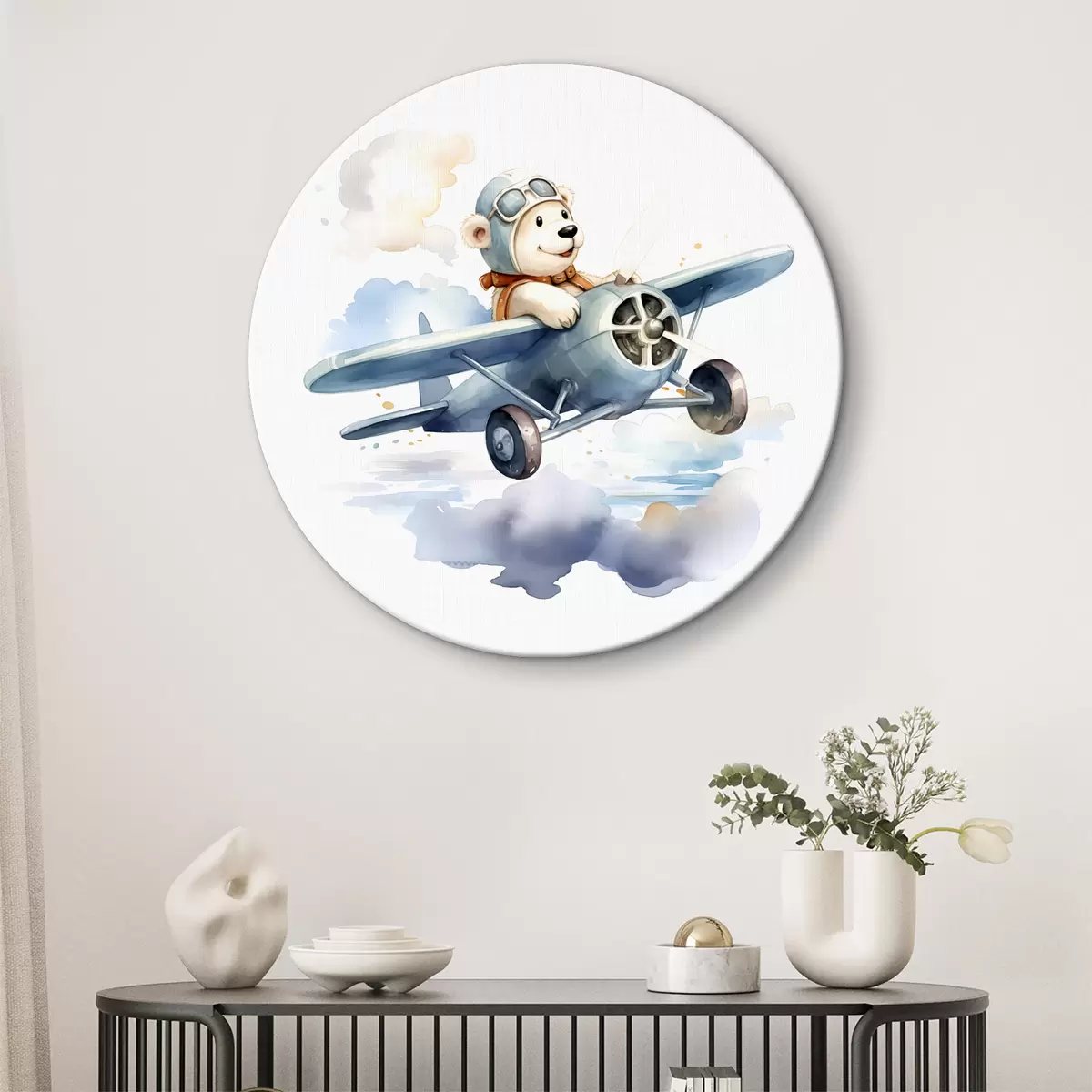 Kép Szemüveges fehér medvebocs repül egy repülőgép akvarell gyermek illusztráción Nr r38935
