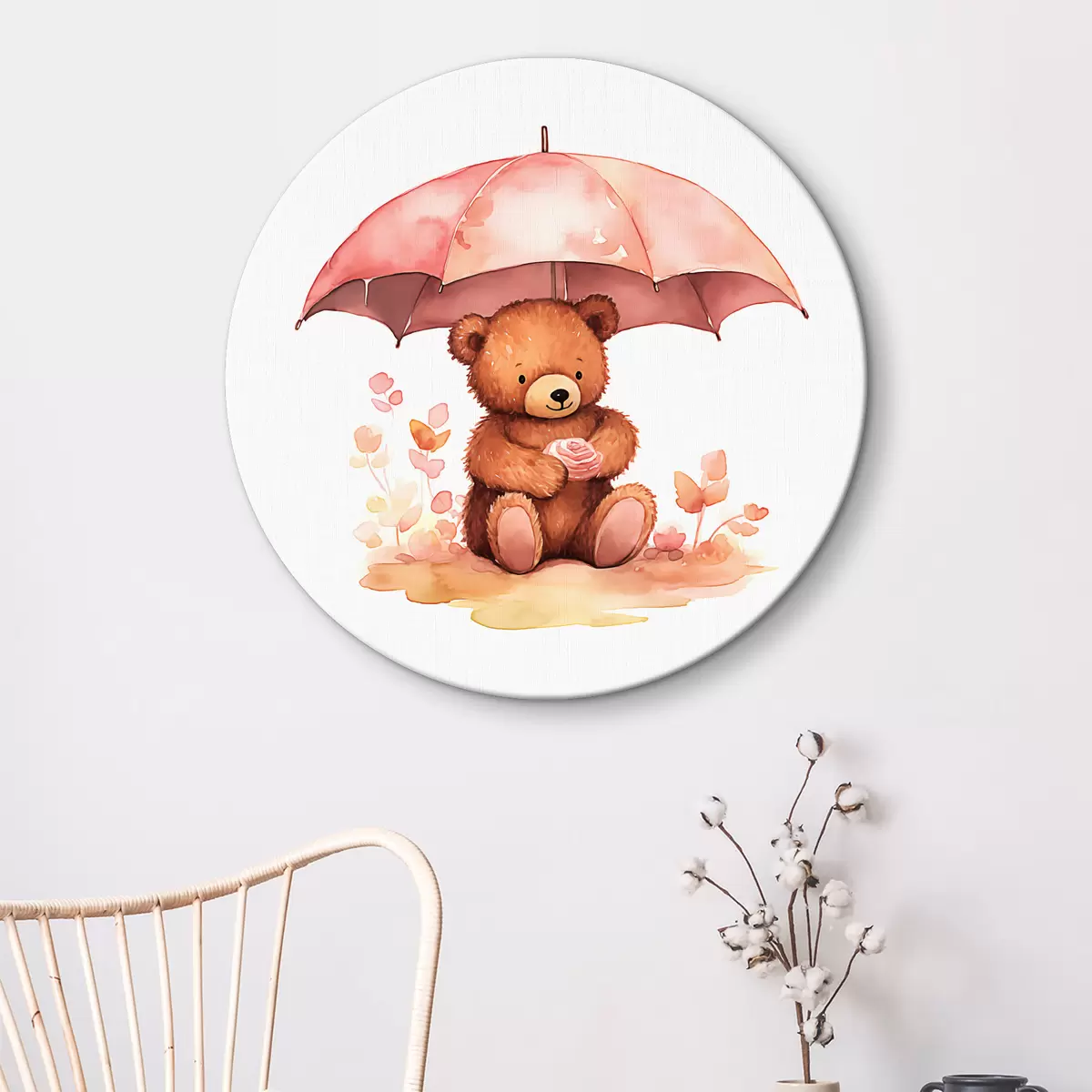 Kép Barna medve ül egy rózsaszín esernyő alatt, és rózsát tart a kezében, gyermekakvarell illusztráció Nr r38947