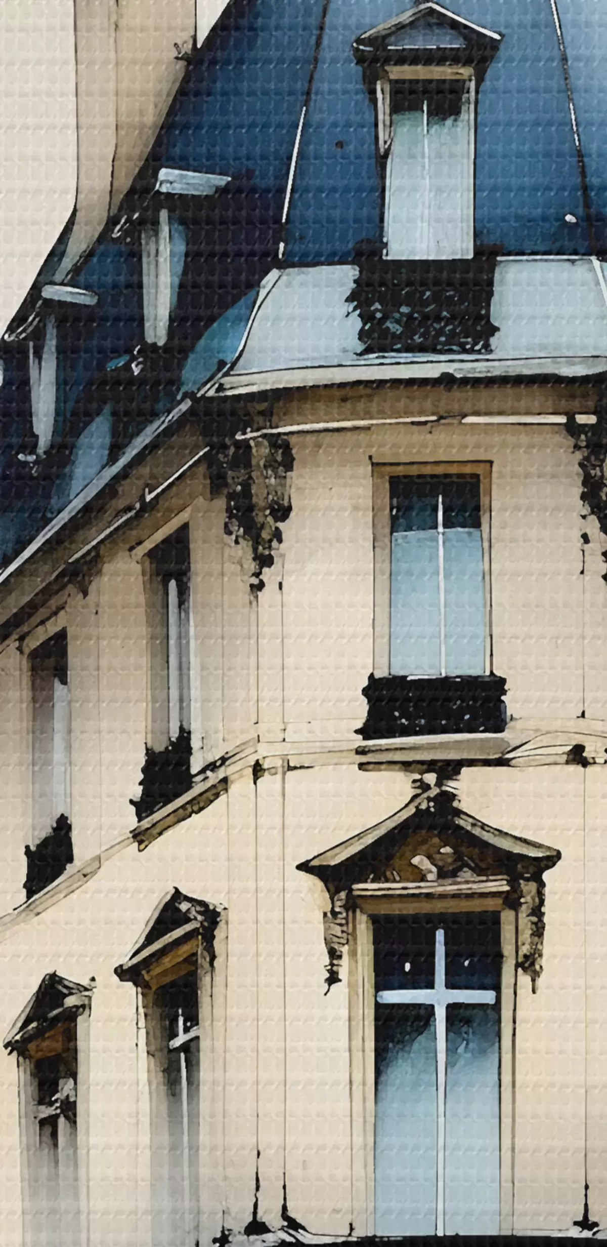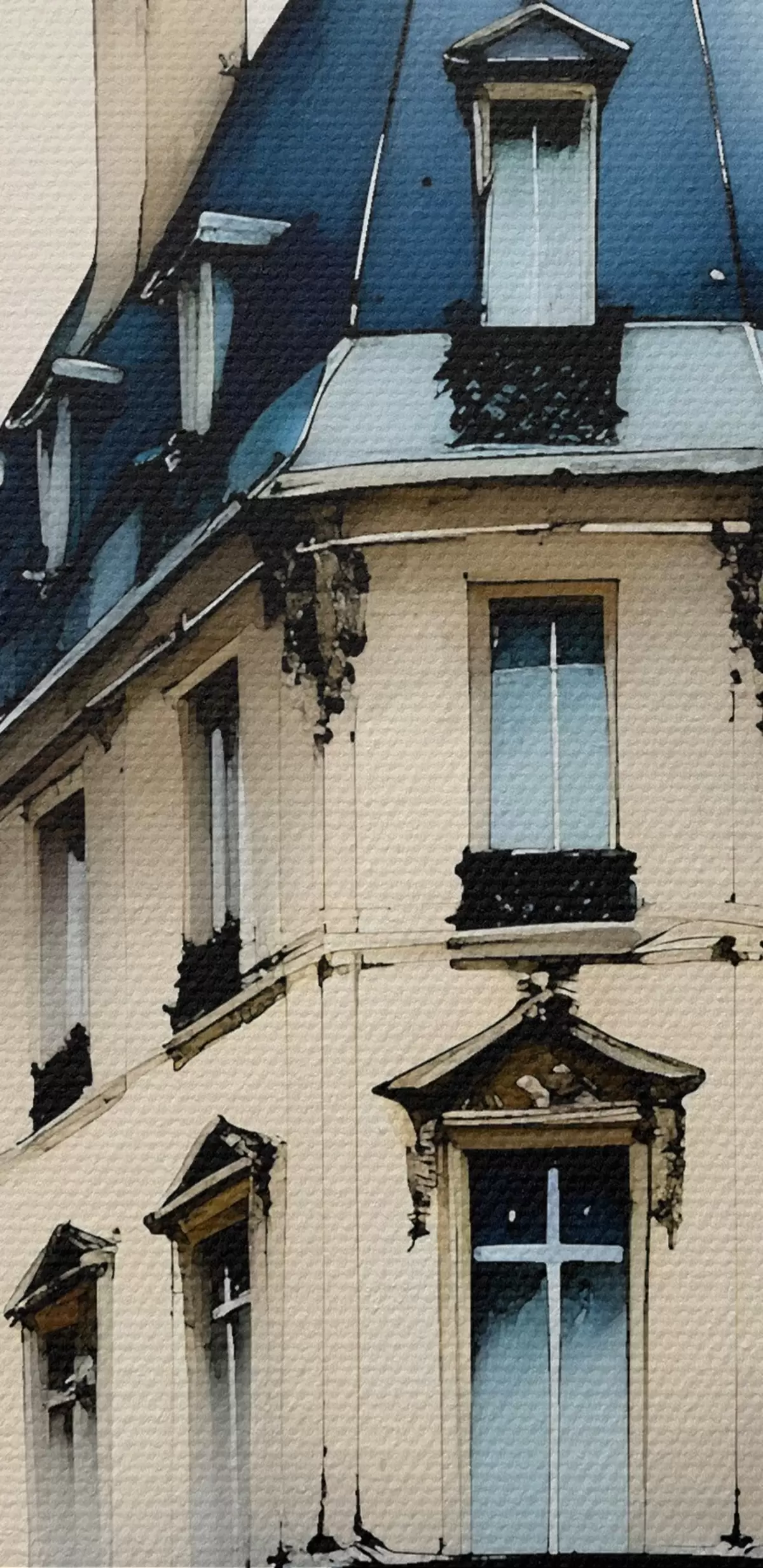 Kép Történelmi épület akvarell festése ívelt homlokzattal, díszítő építészeti elemekkel Nr r38975