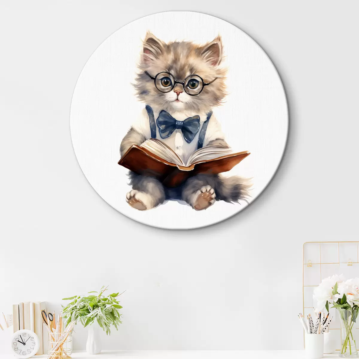 Kép Szürke cica fekete szemüvegben és kék öltönyben akvarell könyvet olvas Nr r39023
