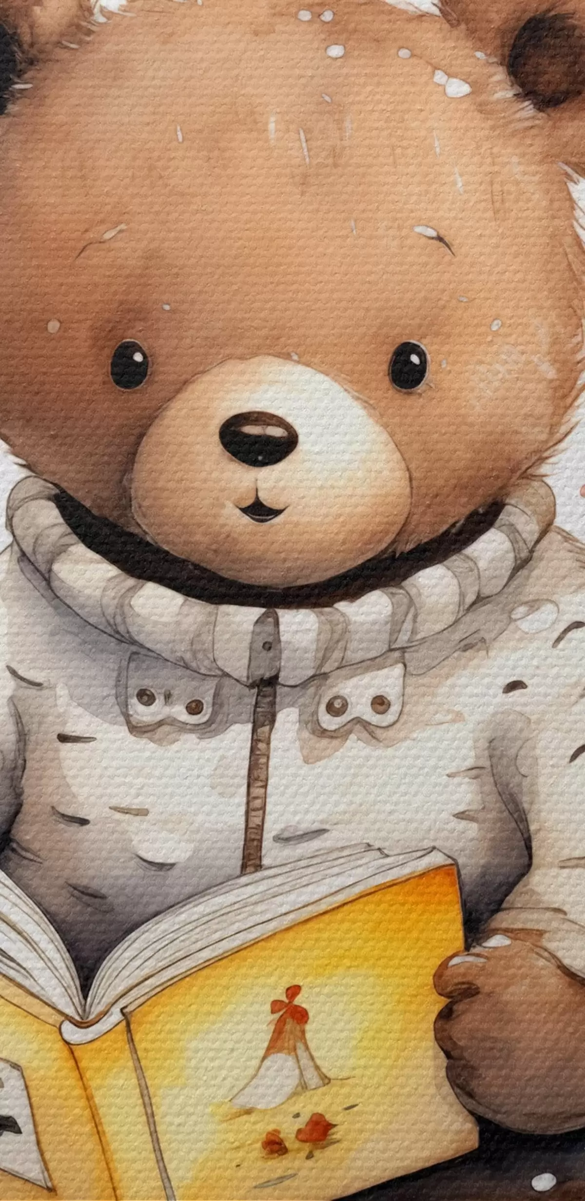 Kép Barnamedve kölyök pulóverben akvarell pillangókkal körülvéve könyvet olvas Nr r39025