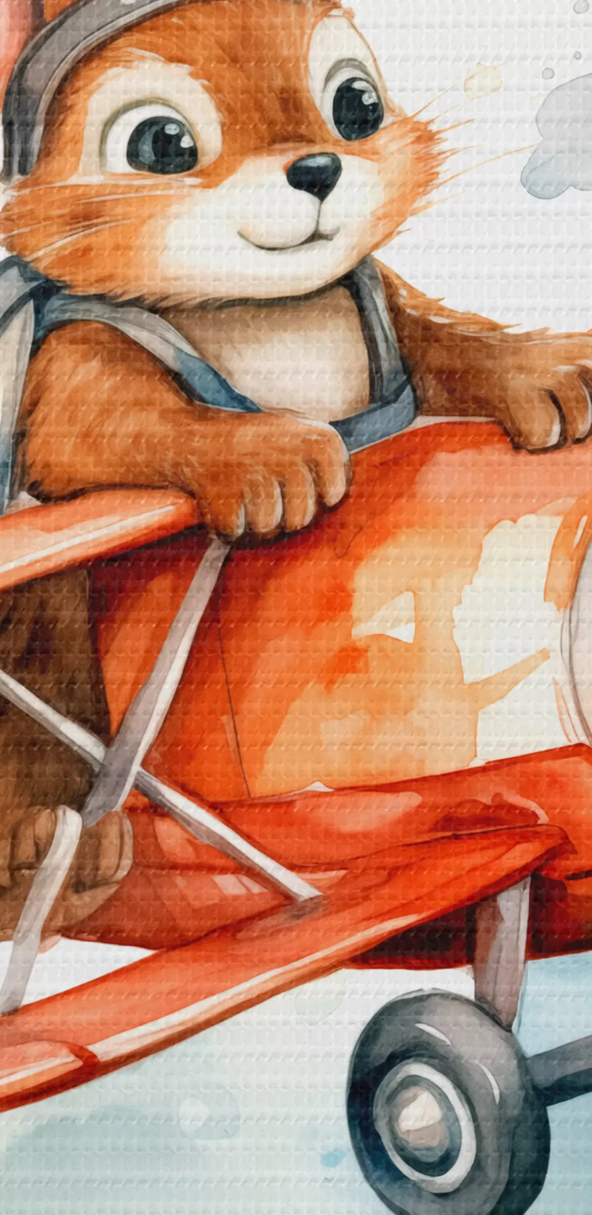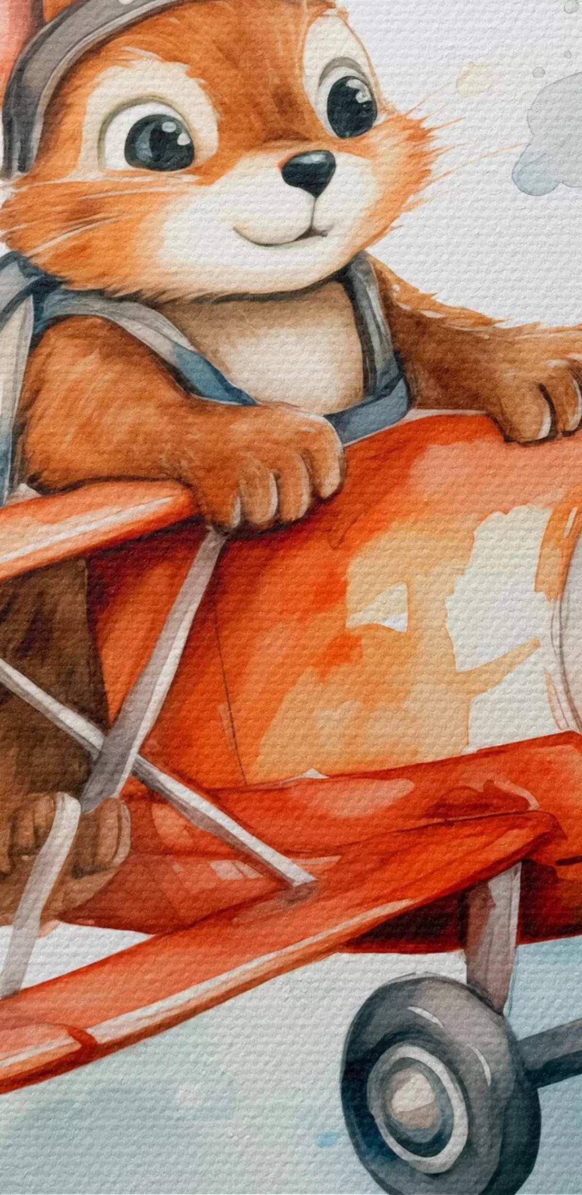 Kép Mókusbébi repül piros síkban, akvarell gyermek illusztrációval Nr r39116
