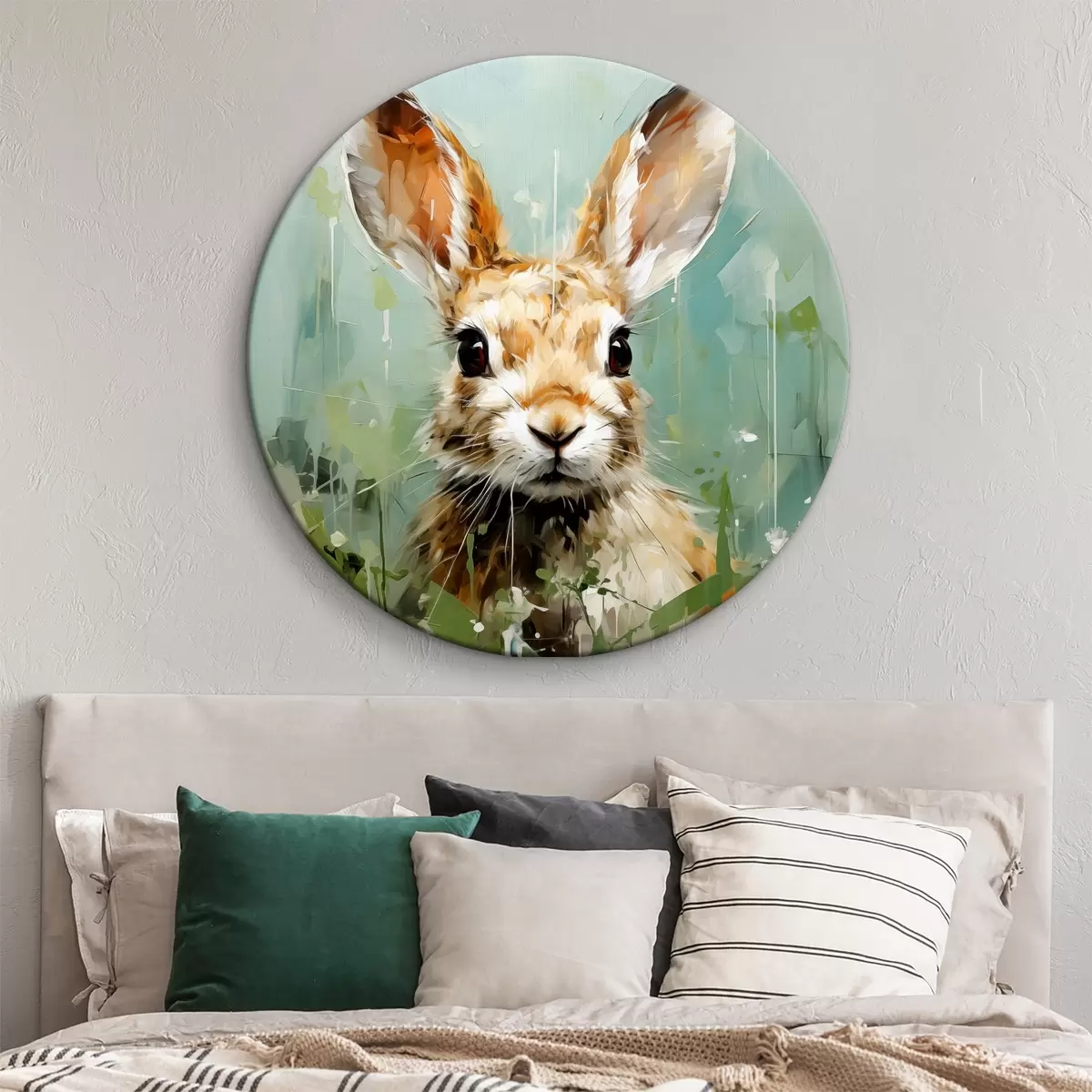 Kép Egy vörös nyúl ül a fűben, zöld alapon, olajfestmény absztrakt művészet Nr r39184