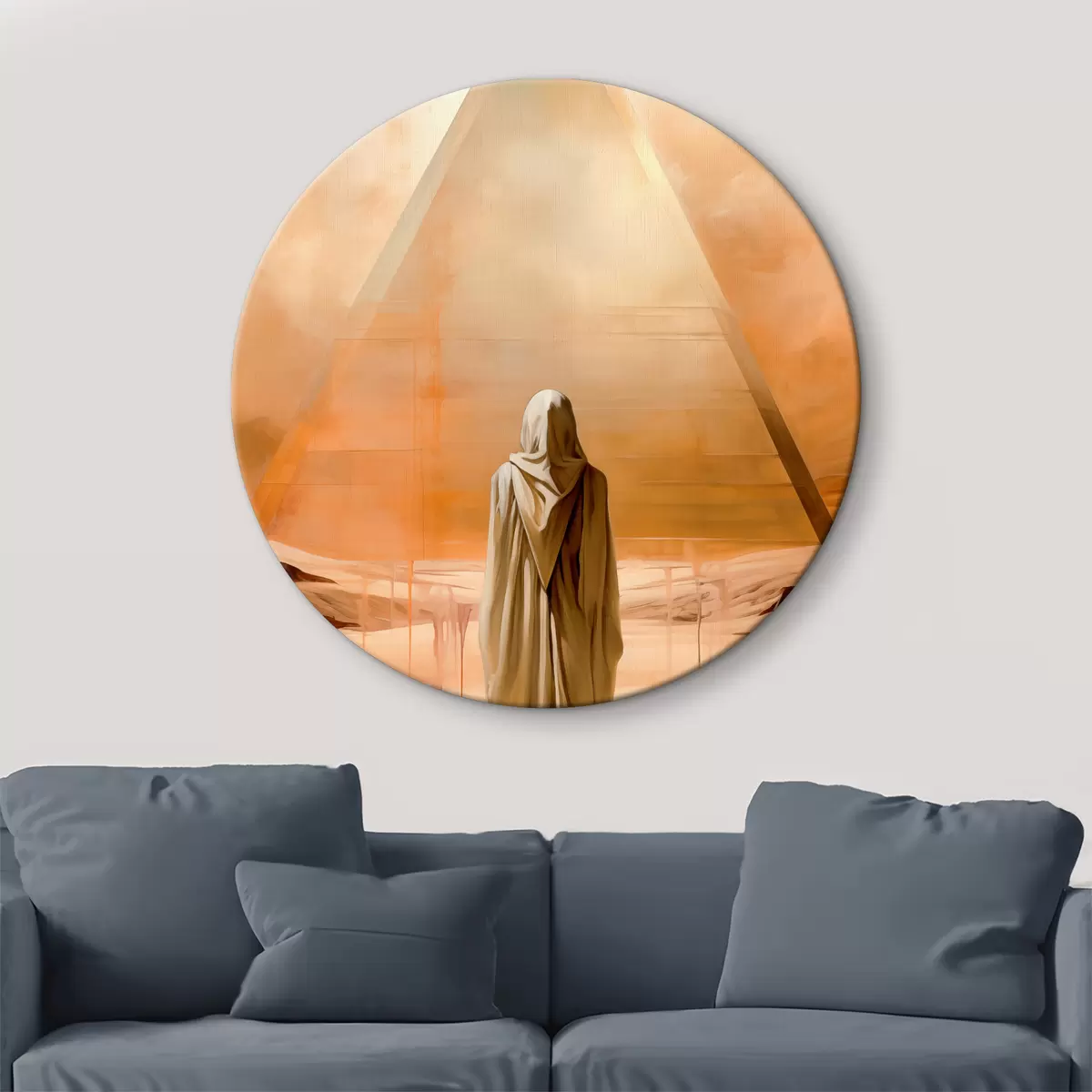 Kép Egy férfi sziluettje egy fehér köpenyben, kapucnis a háttérben egy piramis a sivatagban Nr r39329