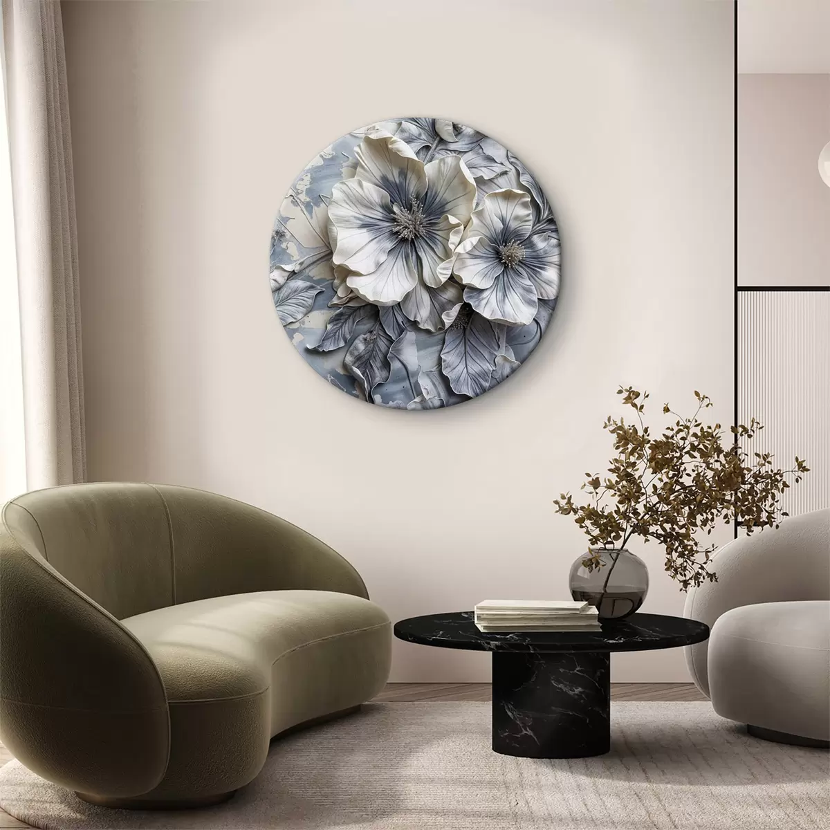 Kép Nagy, szürke és fehér olajfestmény virágokról bonyolult részletekkel, lágy, elmosódott háttér előtt Nr r39385