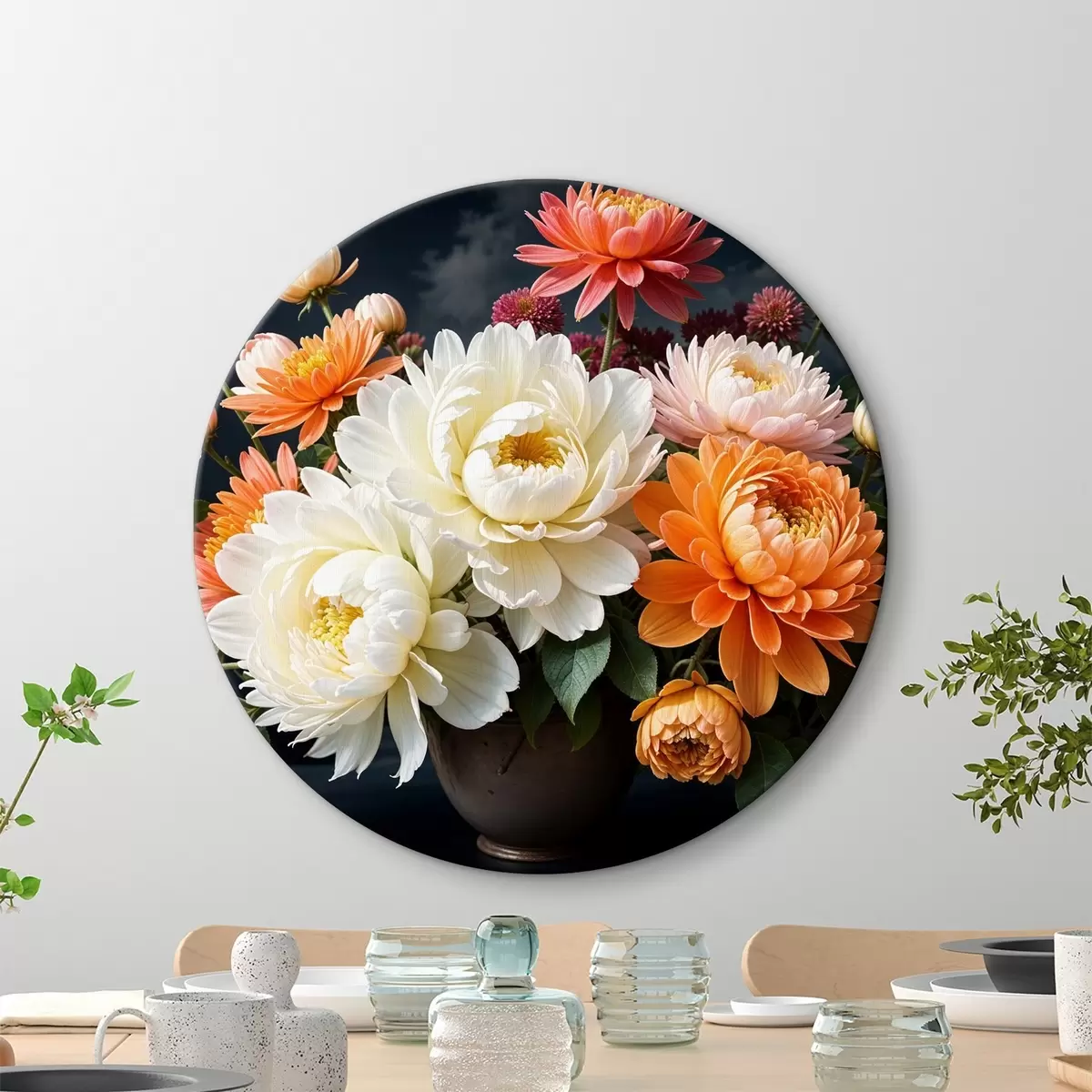 Kép Egy csokor élénk dália virágokból különböző színekben, sötét háttér előtt Nr r39399