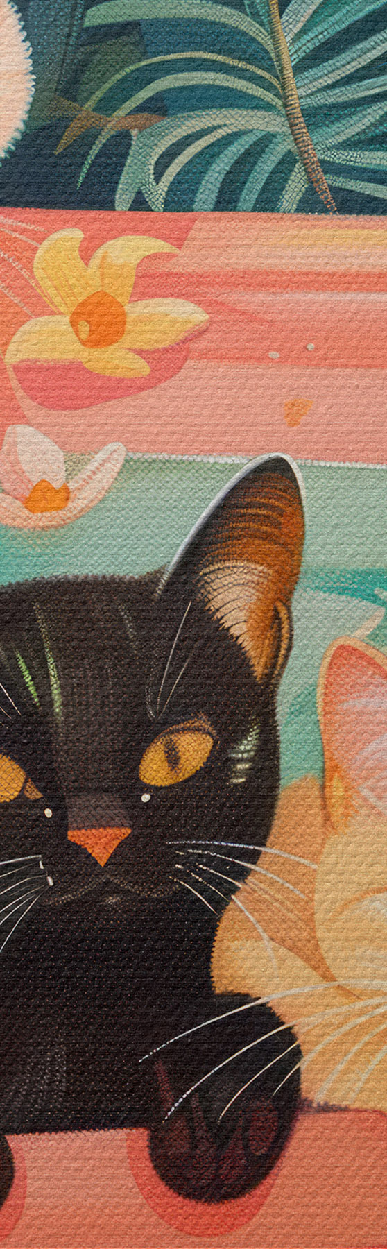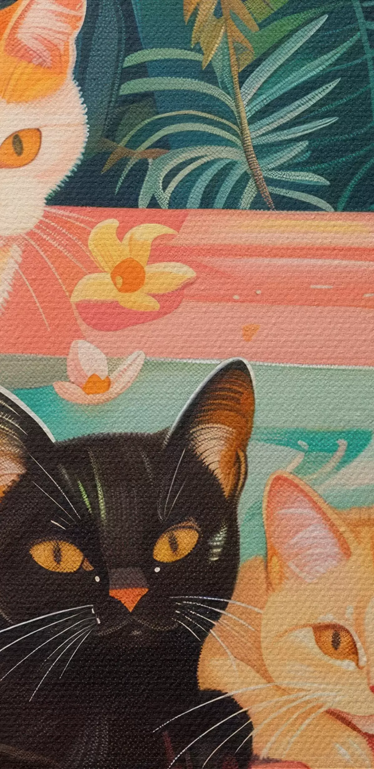 Kép Macskák rózsaszín fürdőben zöld levelekkel, dzsungel hangulattal Nr r39465