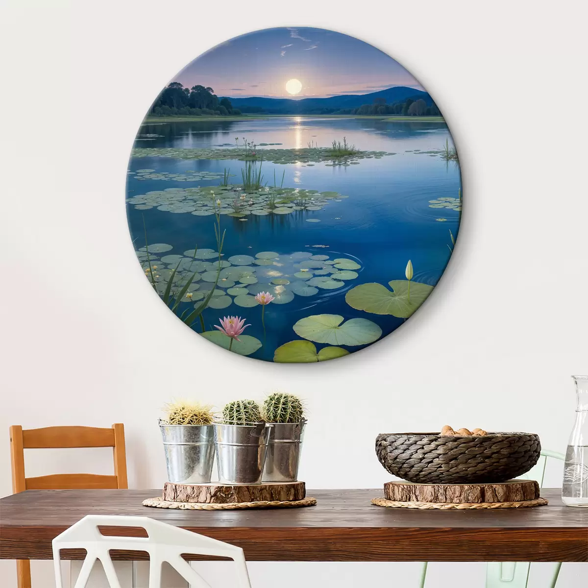 Kép Nyugodt tó buja növényzettel körülvéve, a felszínen lebegő tavirózsákkal és gyönyörű naplementével Nr r39494