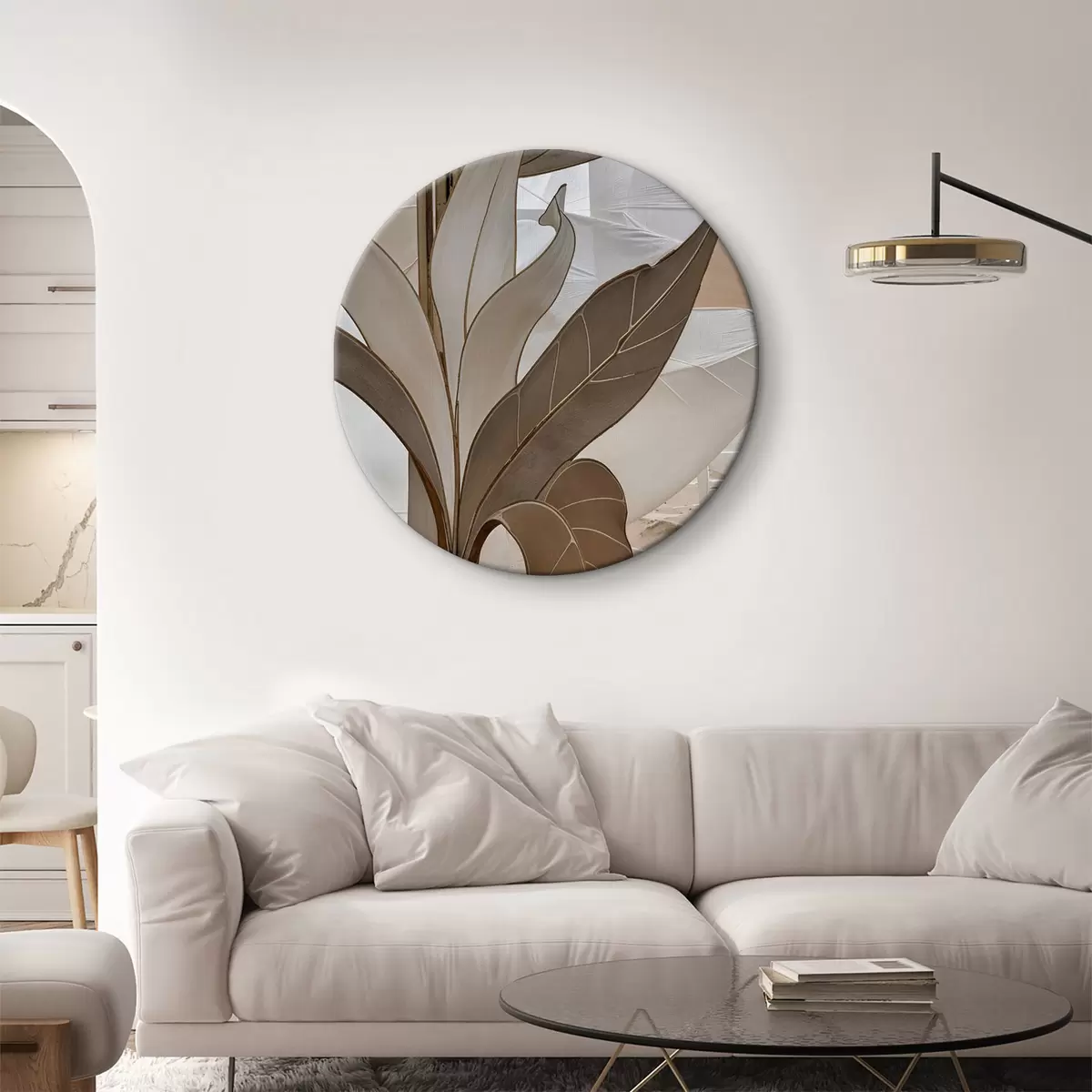 Kerek festmények Közeli kép egy absztrakt geometriai mintáról, egymást átfedő formákkal és textúrákkal bézs árnyalatokban r39498