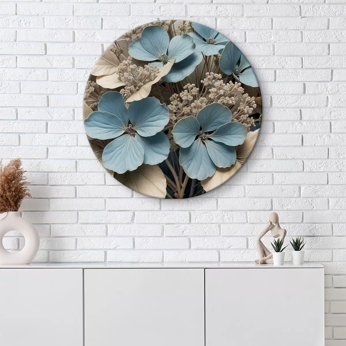 Kép Közelkép kék és fehér virágok lágy, elmosódott szirmokkal barna háttéren Nr r39517