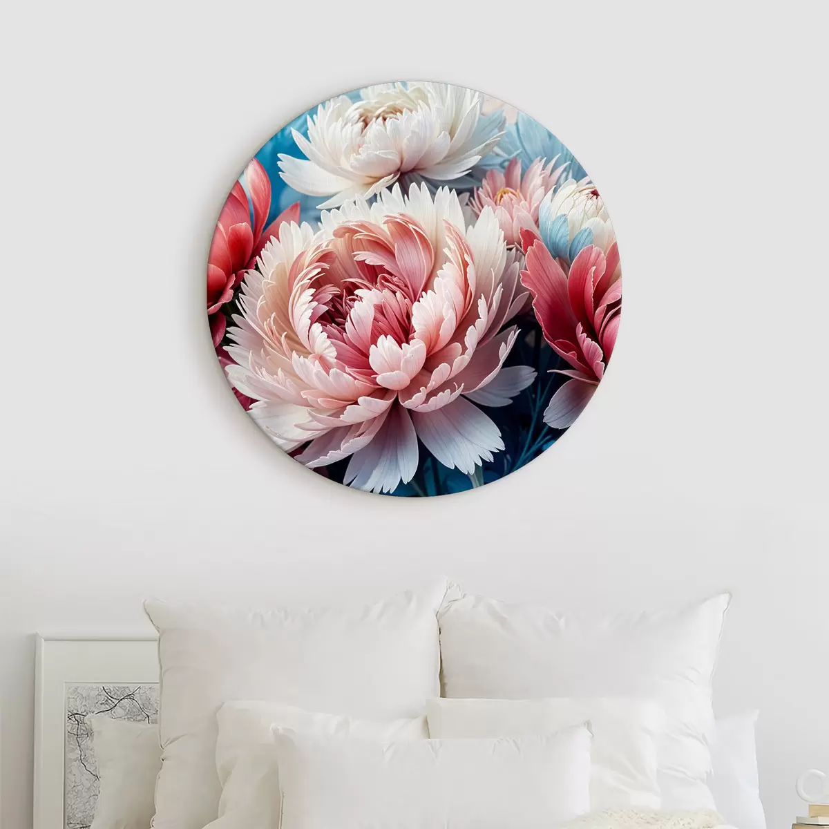Kép Egy csokor nagy, élénk rózsaszín és fehér bazsarózsa virágokból kék háttér előtt Nr r39519