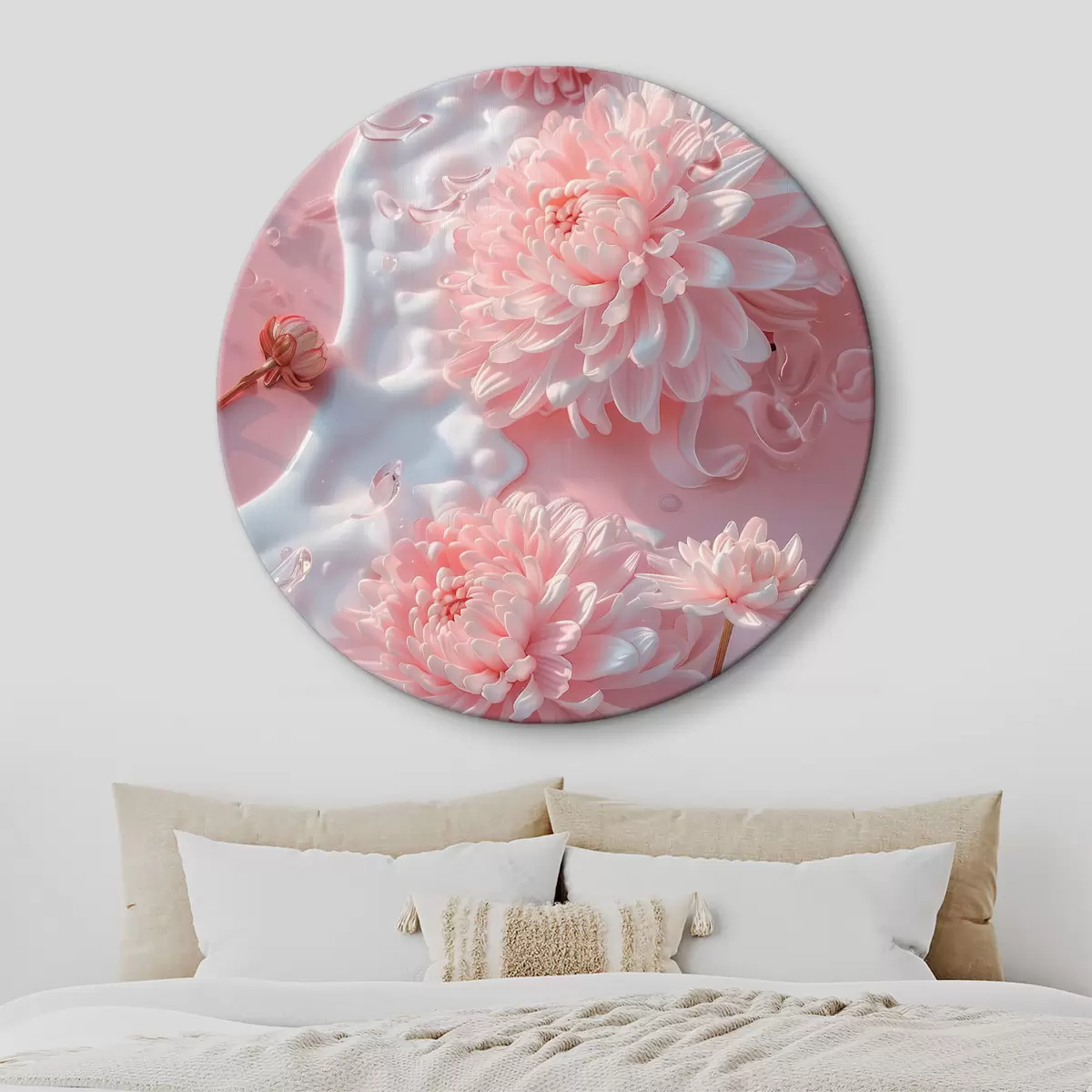 Kép Krizantém kompozíció: néhány virágzás, tejjel, rózsaszín alapon Nr r39640