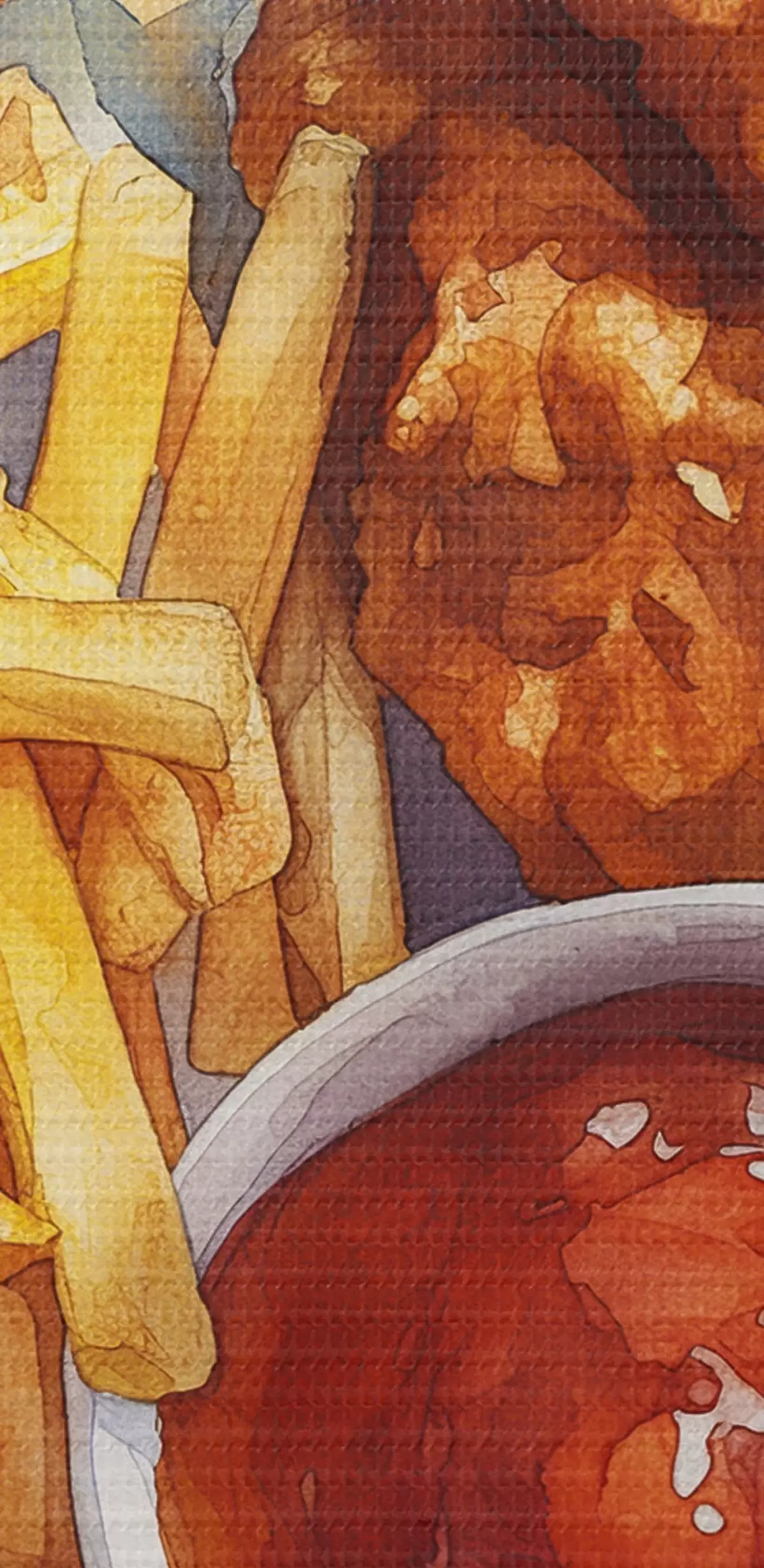 Kép Akvarell street food, sült krumpli sült csirkével, finom Nr r39709