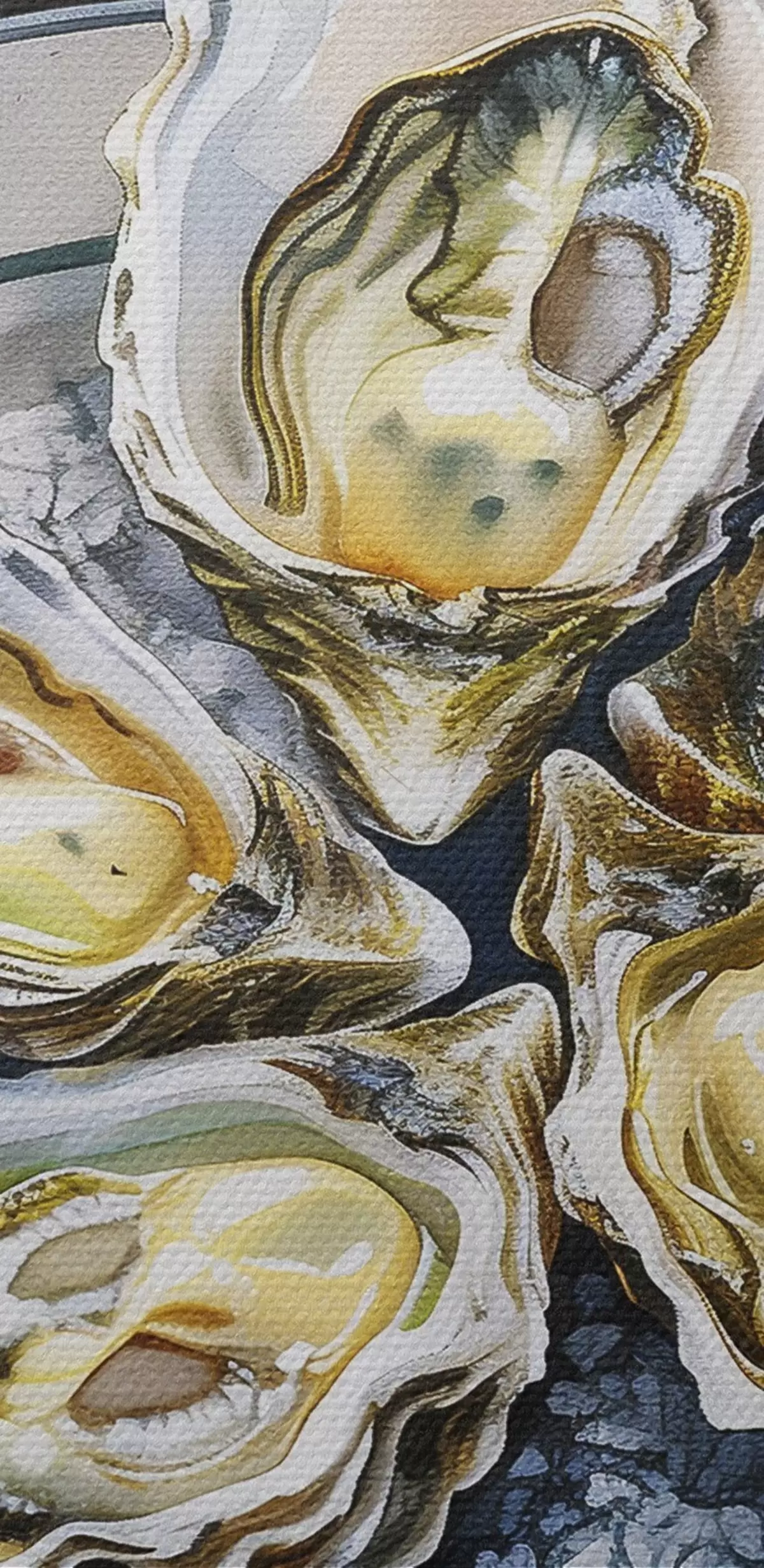 Kép Elegáns osztriga a tányéron, citrom és virág, nyári színek, mediterrán Nr r39710