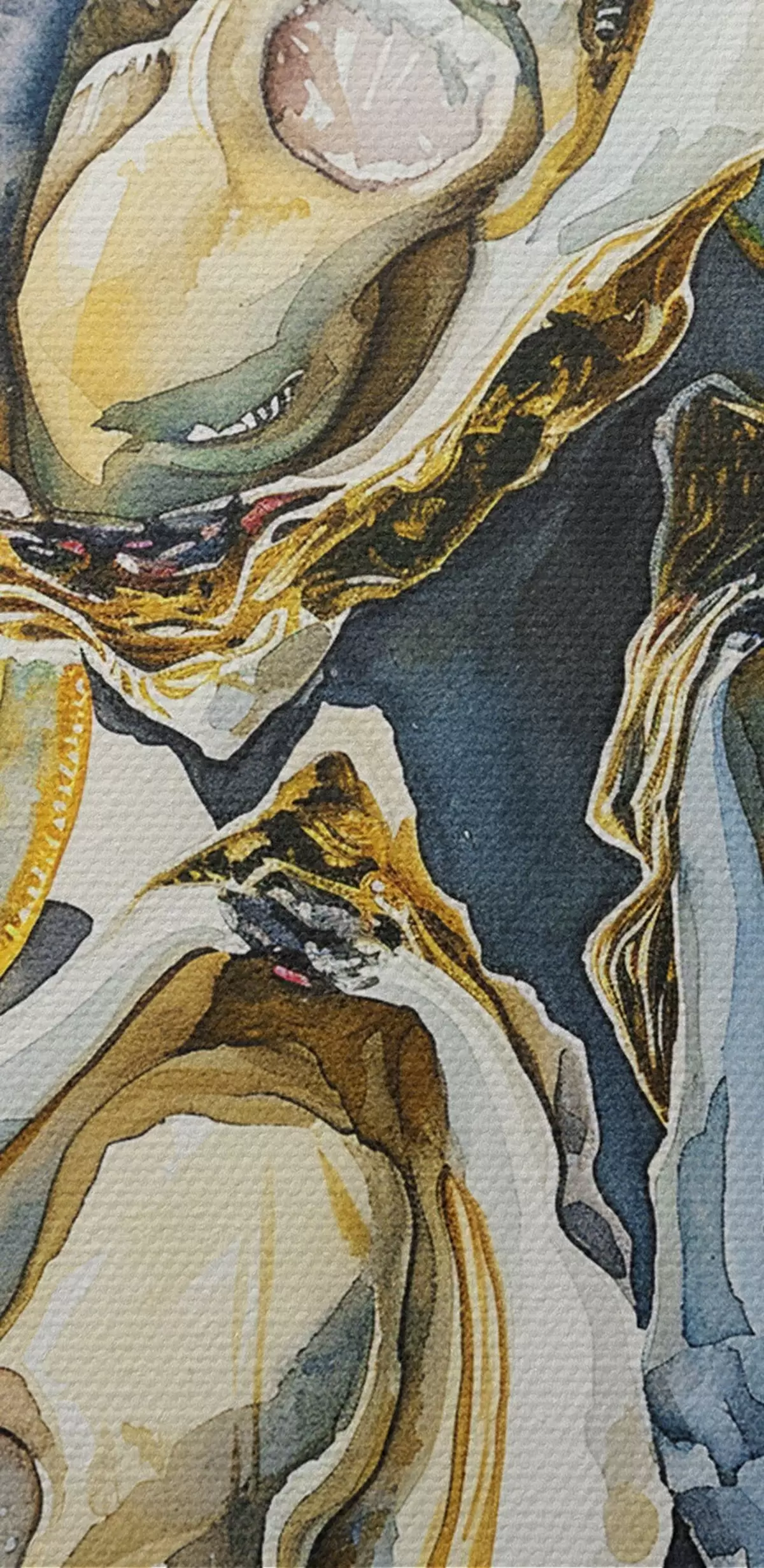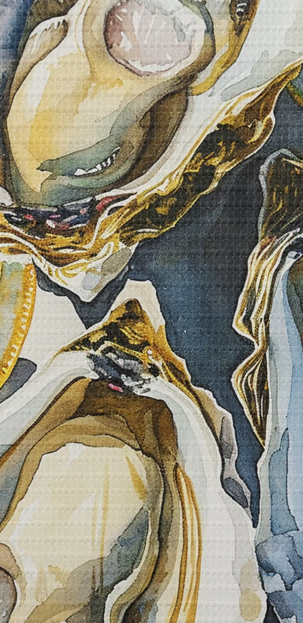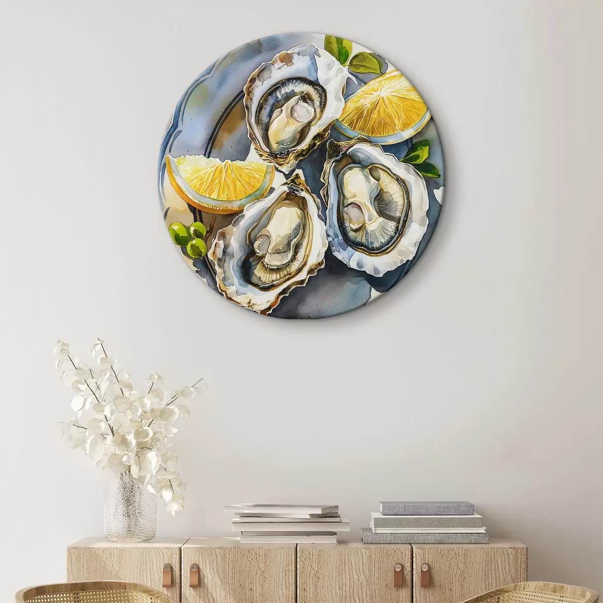 Kép Elegáns osztriga a tányéron, akvarell, citrom, természetes színek, mediterrán Nr r39711