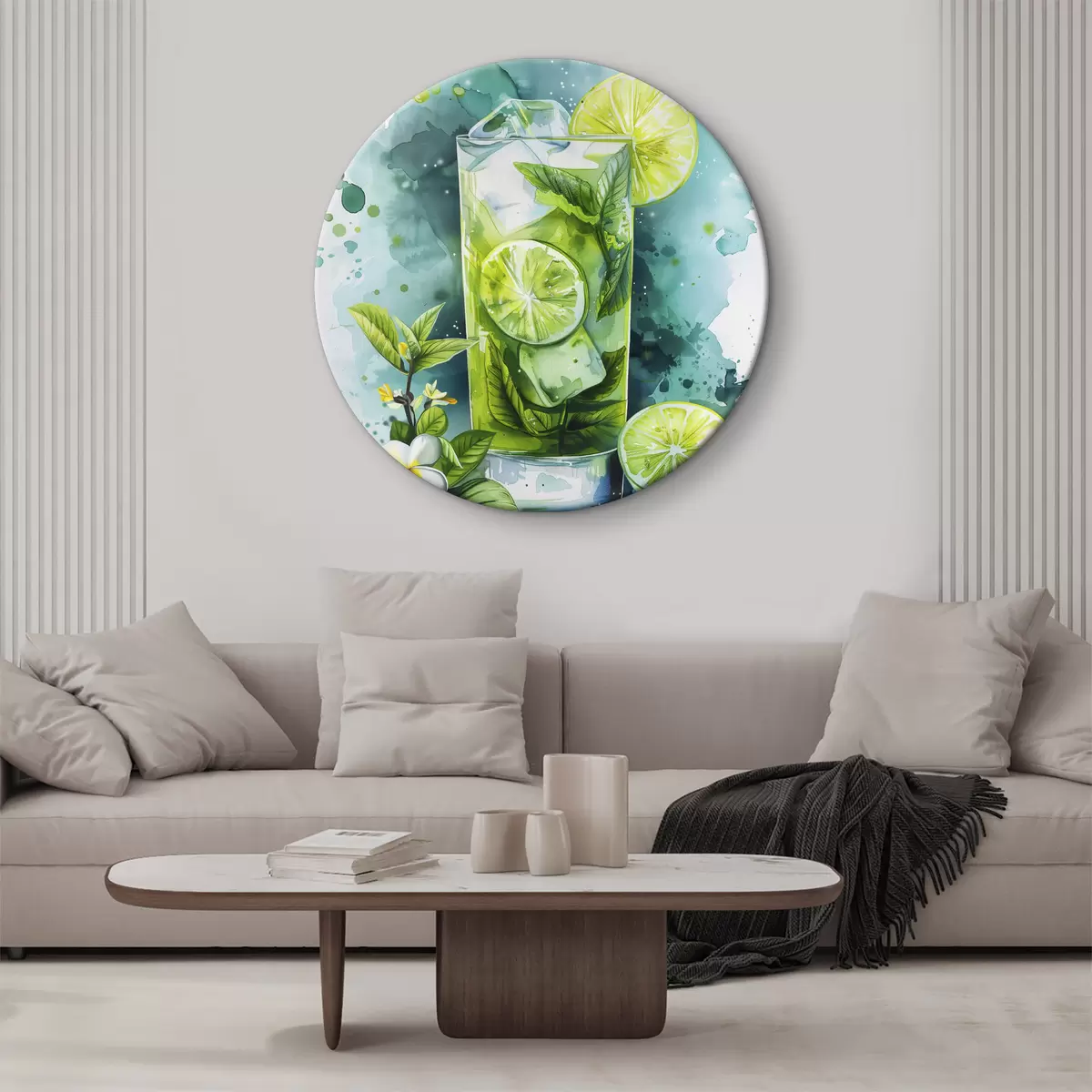 Kép Akvarell nyári koktél, mojito, lime és menta, virágos, zöld színek Nr r39712
