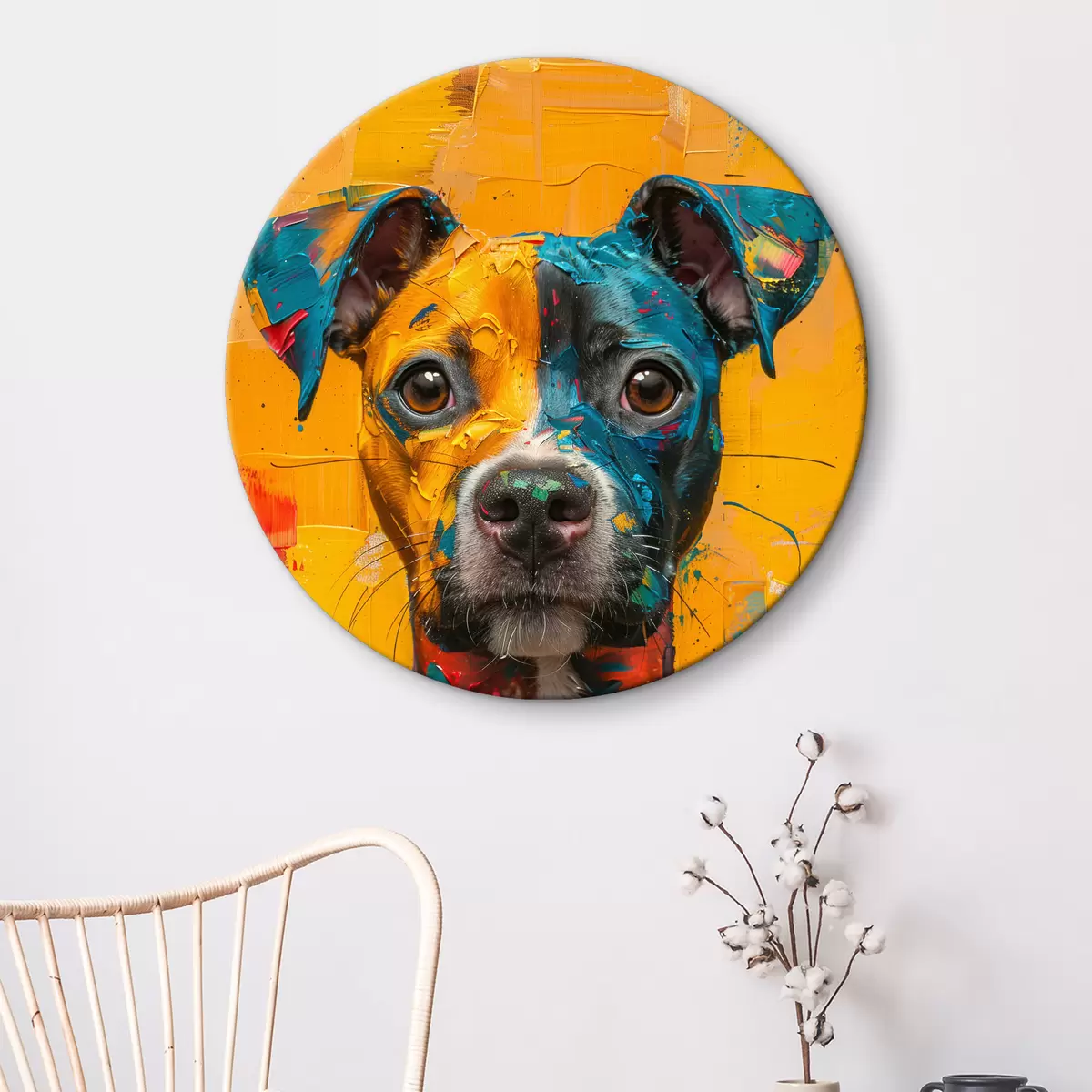 Kép Egy Pitbull portréja sárga és kék olajos ecsetvonásokkal Nr r39722