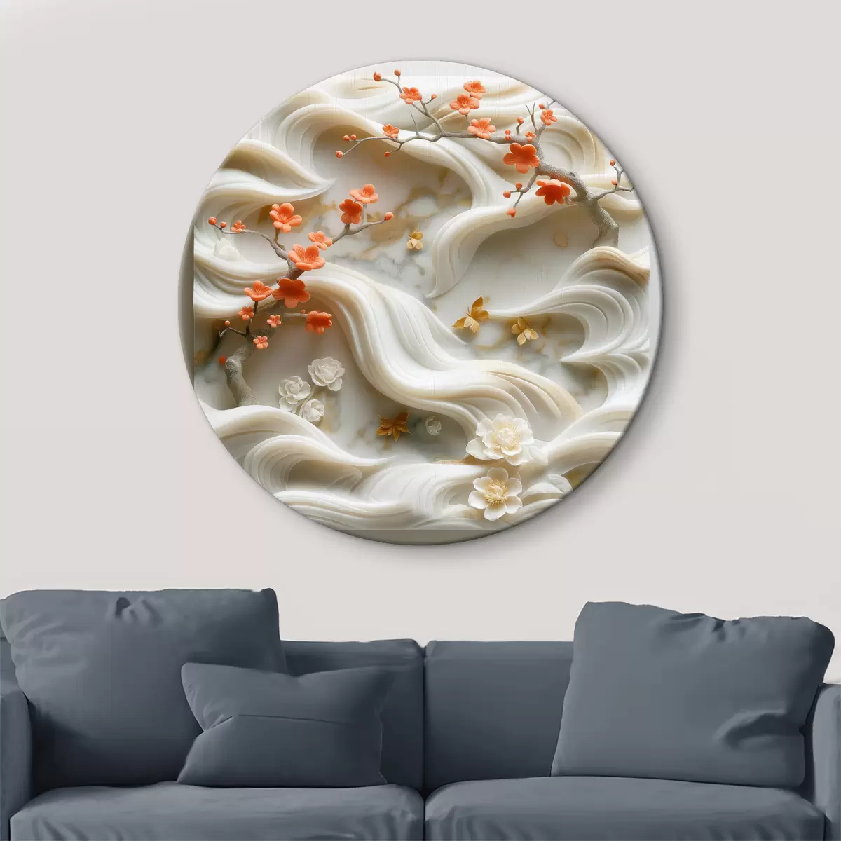 Kép Mennyei 3D-s kerti jelenet fehér márvány domborművel, áramló növény- és állatvilággal Nr r39730