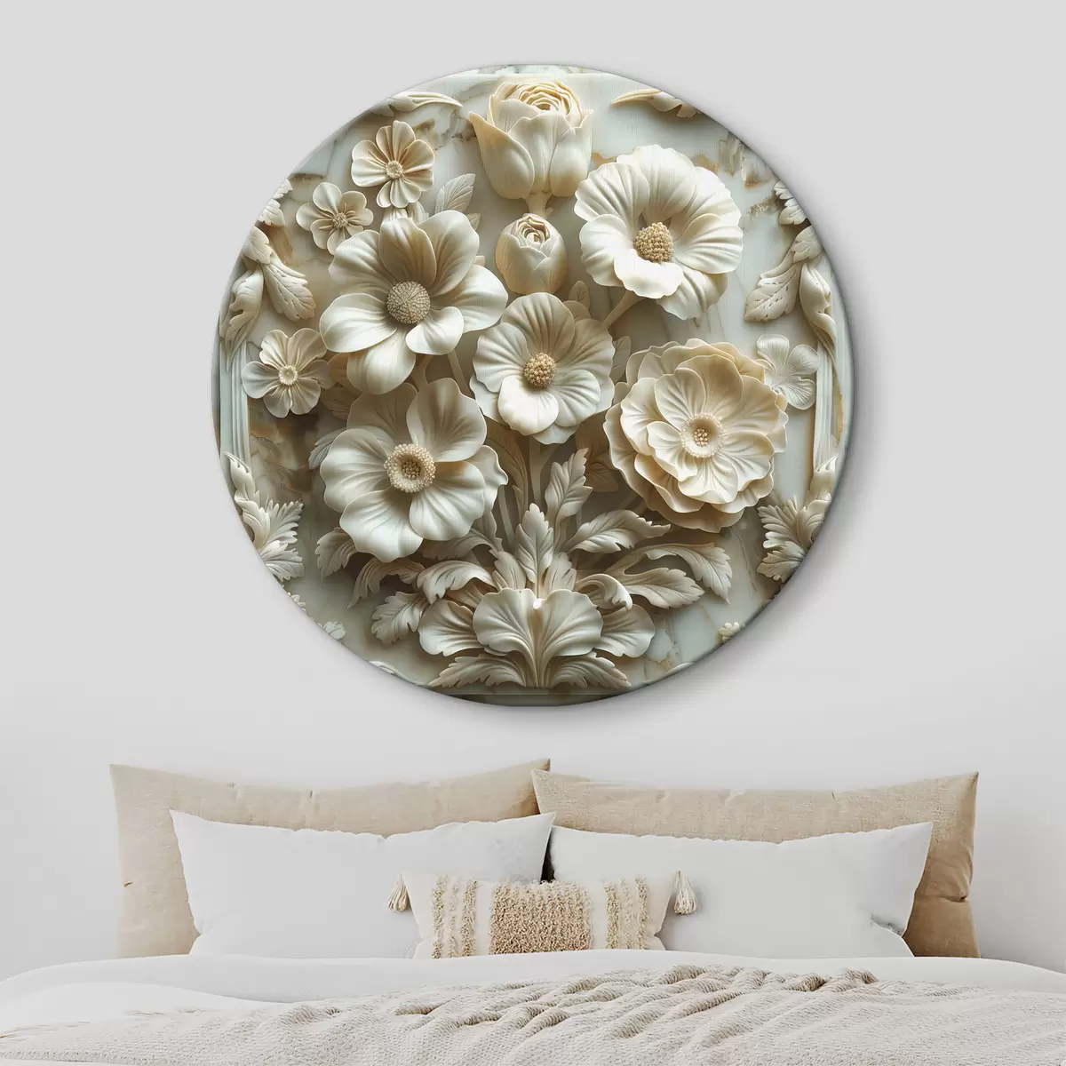 Kép 3d fehér bazrelief virágok márvány háttéren, keretben, márványból készült keret Nr r39739