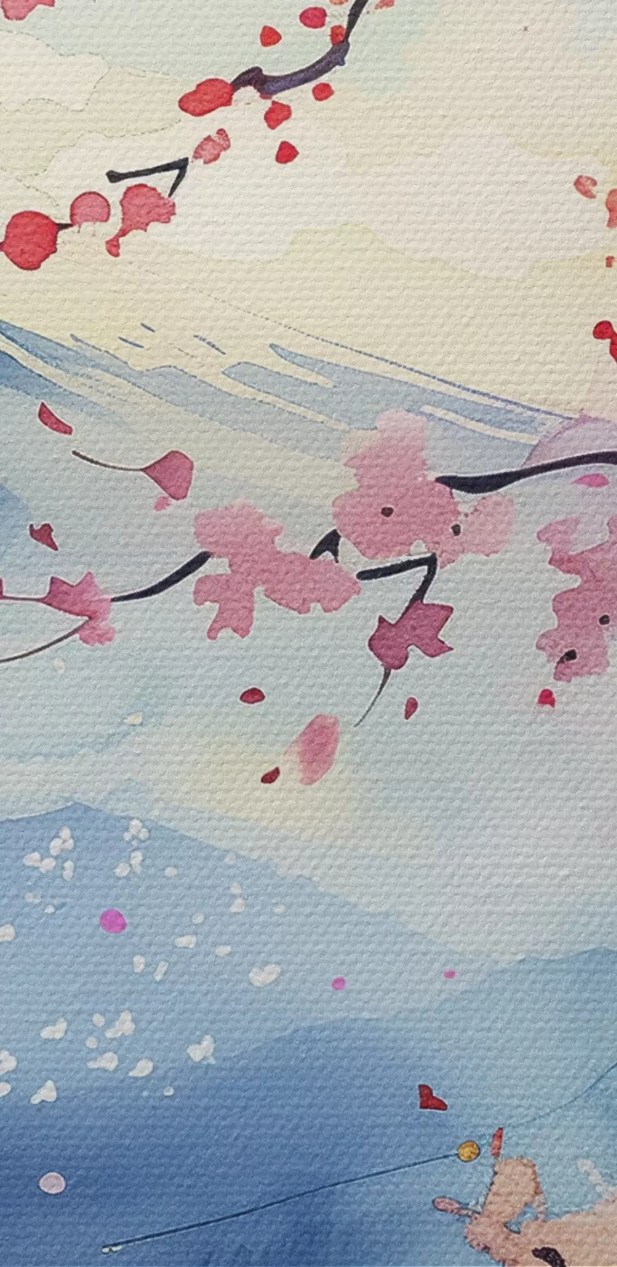 Kép Hegyi Fuji táj, keleti természet, cseresznyefák, naplemente Nr r39775