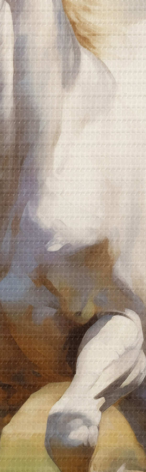 Ahhoz, hogy a vásznat a feszítőrúdra feszítsük anélkül, hogy a kép megsérülne, tükrözött képet használunk.
