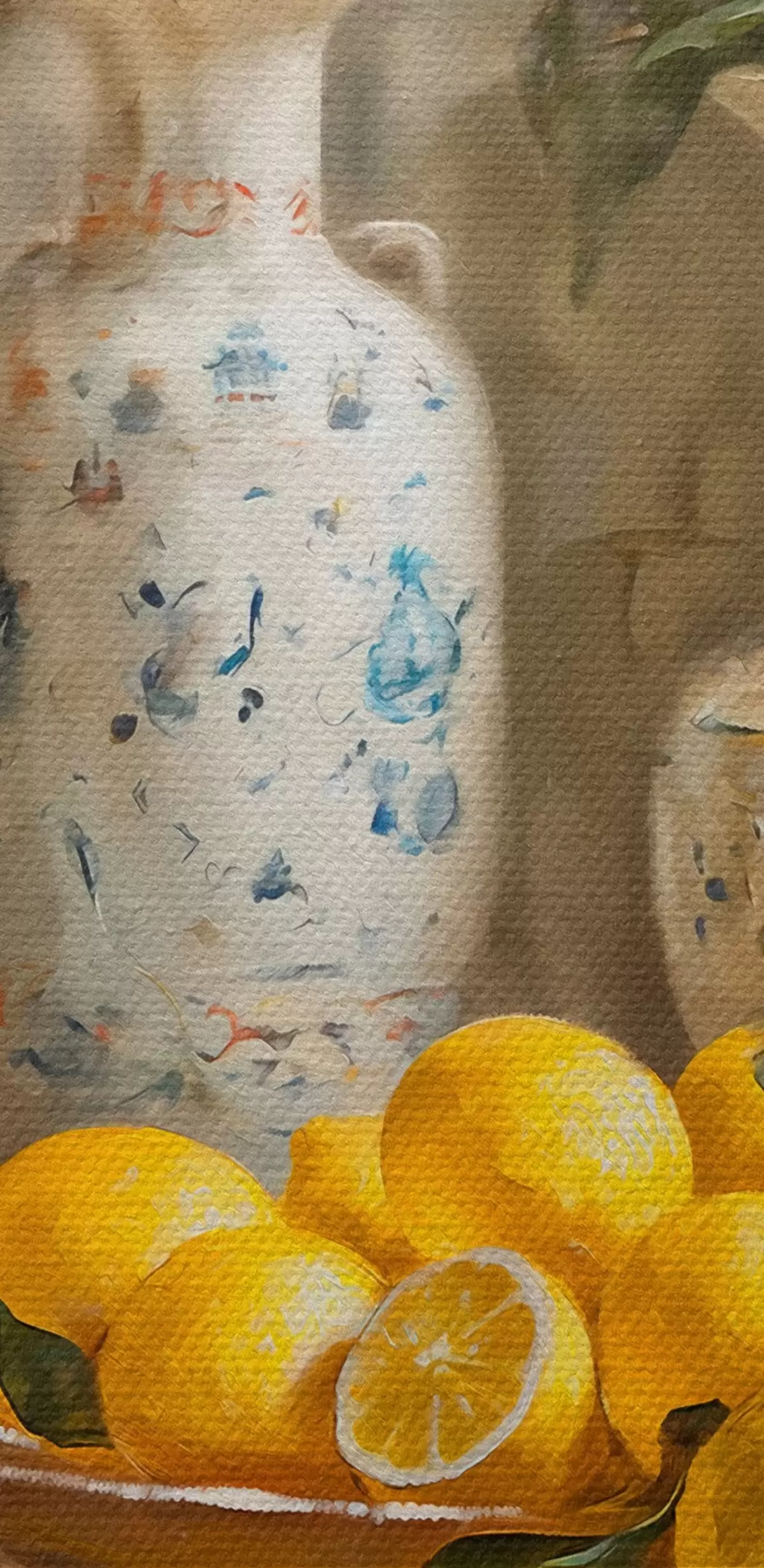 Kép Citrom és vintage vázák az asztalon Nr r39833