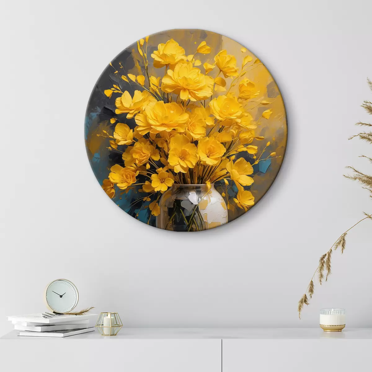 Kép Sárga virágok vázában, tarka akril alapon Nr r39854