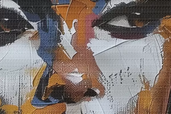 Ahhoz, hogy a vásznat a feszítőrúdra feszítsük anélkül, hogy a kép megsérülne, tükrözött képet használunk.