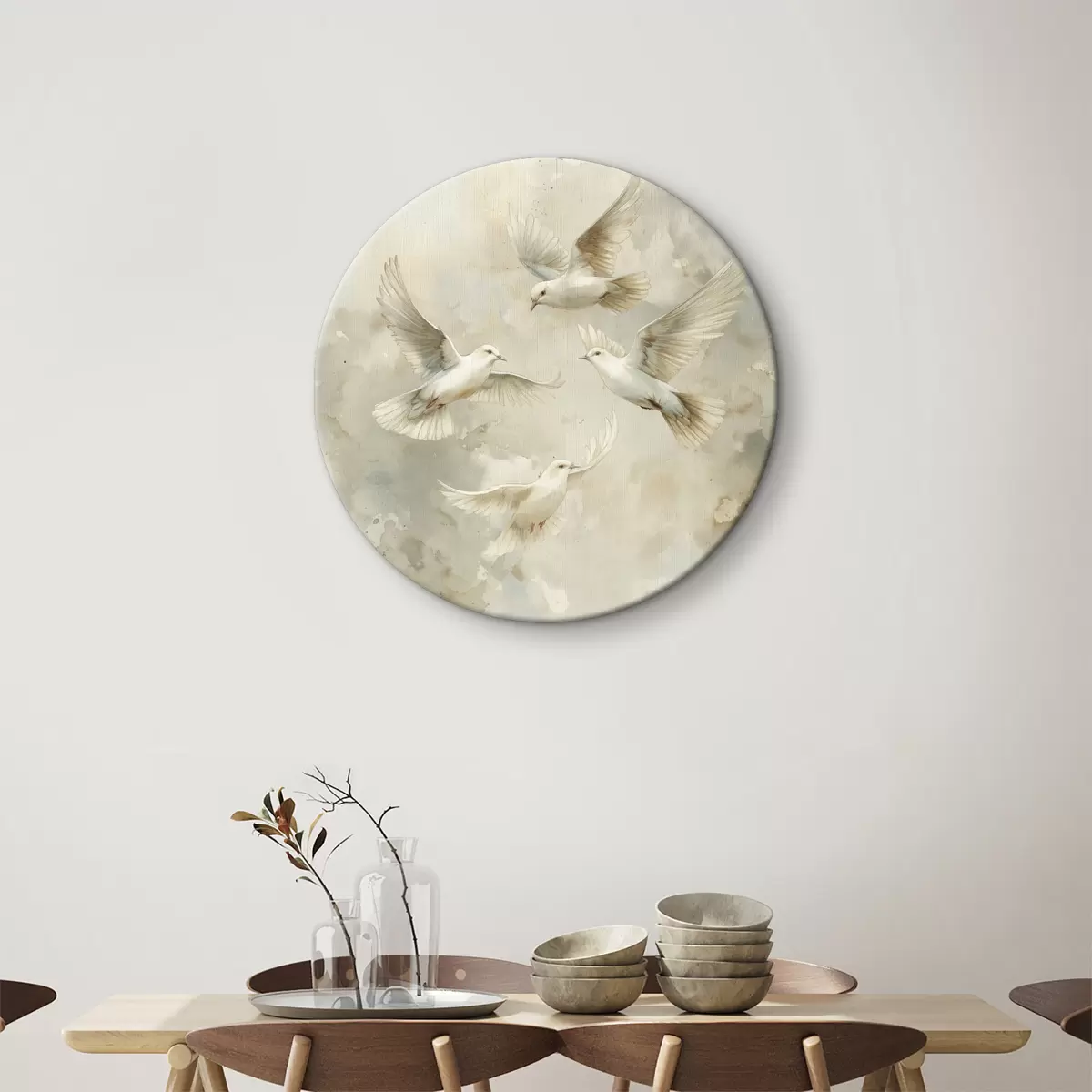 Kép Akvarell repülő madarak, lágy bézs és fehér színek, galambok Nr r39976