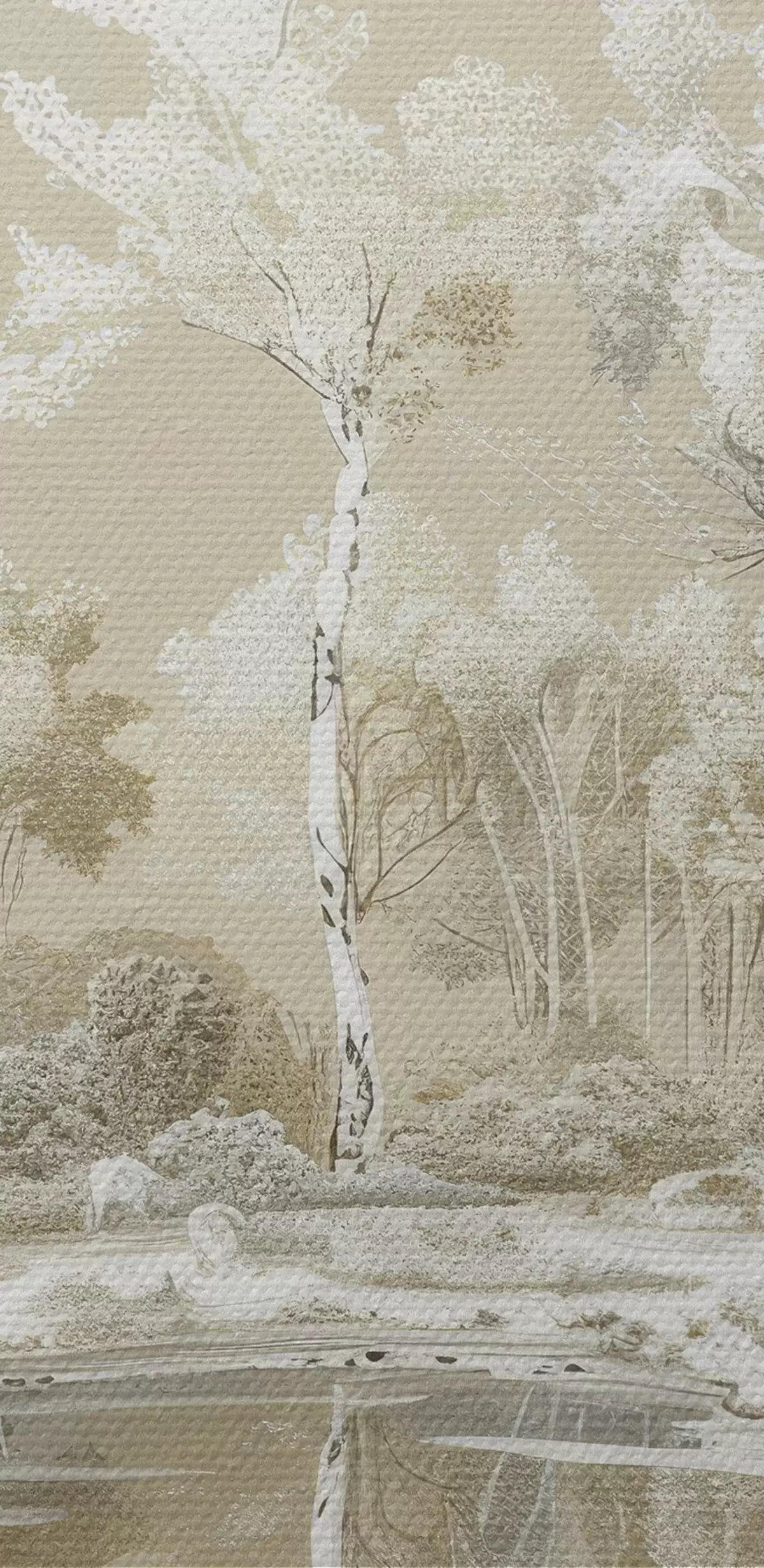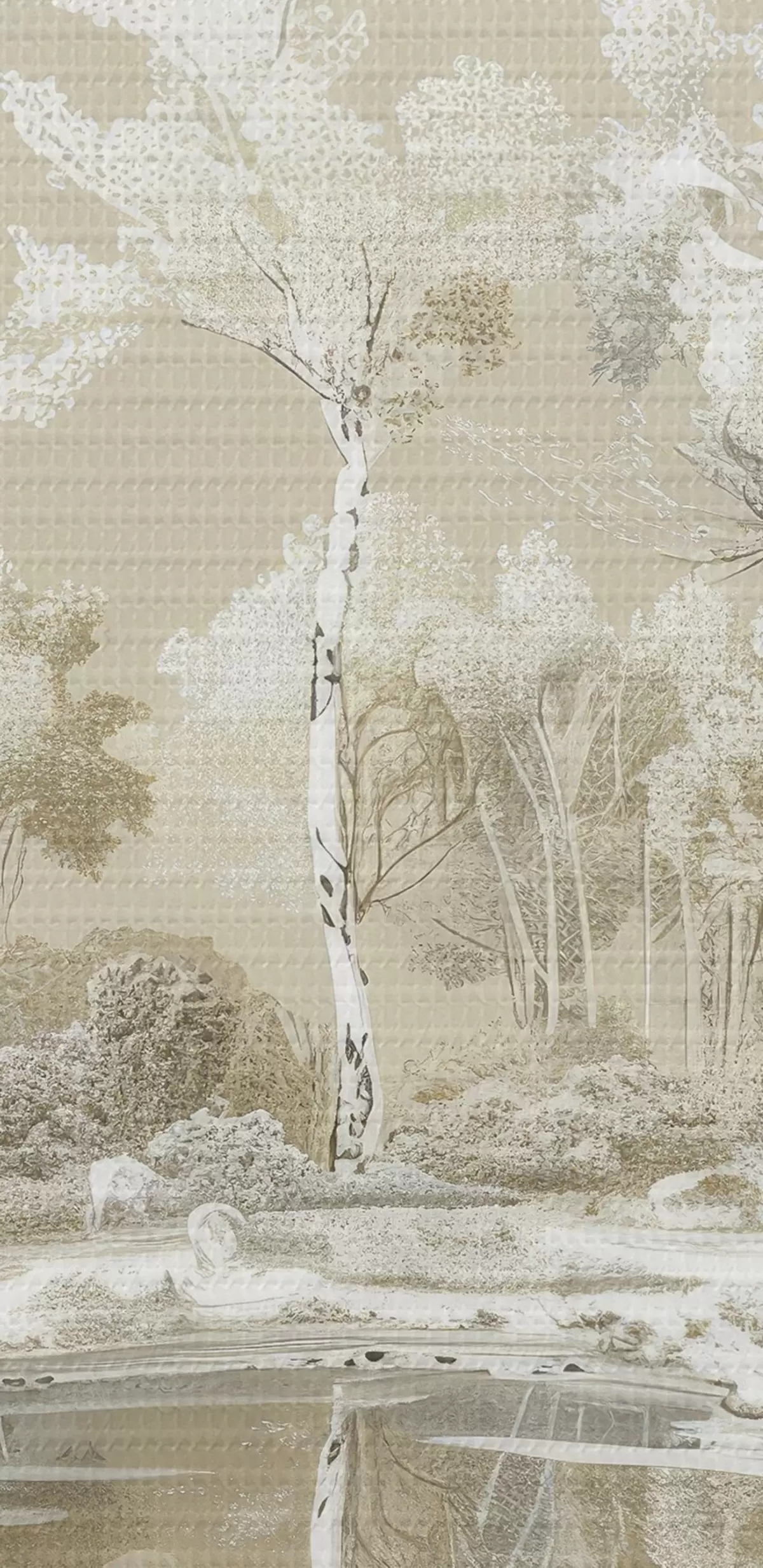 Kép Gyönyörű erdei táj, tó és fák, bézs és fehér színben Nr r39979